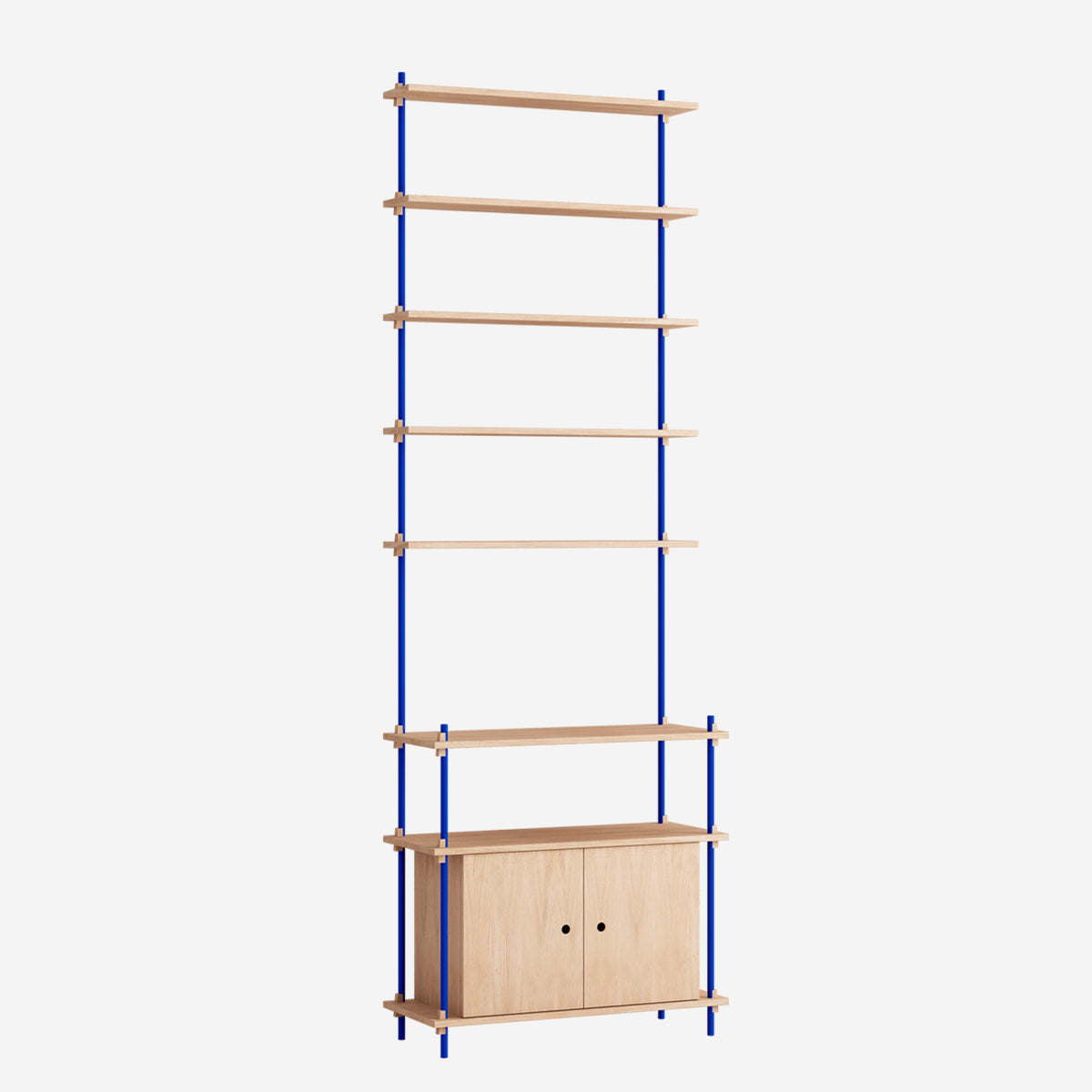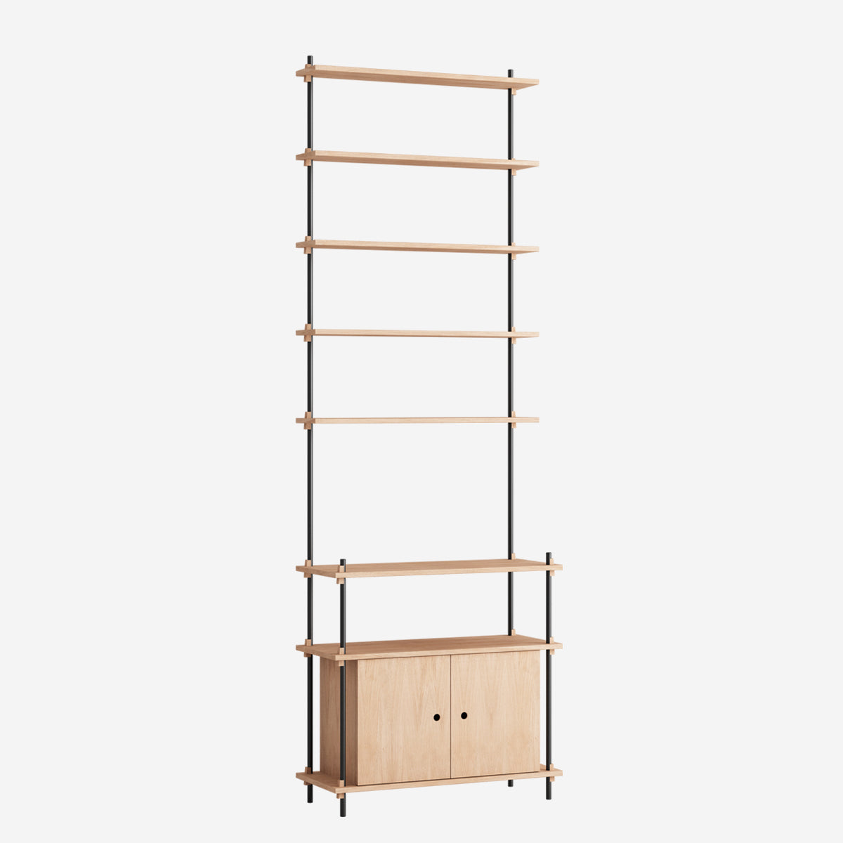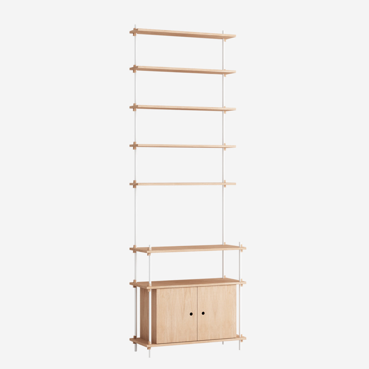 Mit dem MOEBE Shelving System hast du die volle Freiheit, dein eigenes, individuelles Regal zu bauen. Baue es so hoch wie du willst, so breit wie du es brauchst, baue es um Ecken herum oder überbrücke sogar verschiedene Ebenen. Das Shelving System kann als Raumteiler frei stehen oder klassisch an einer Wand platziert werden.