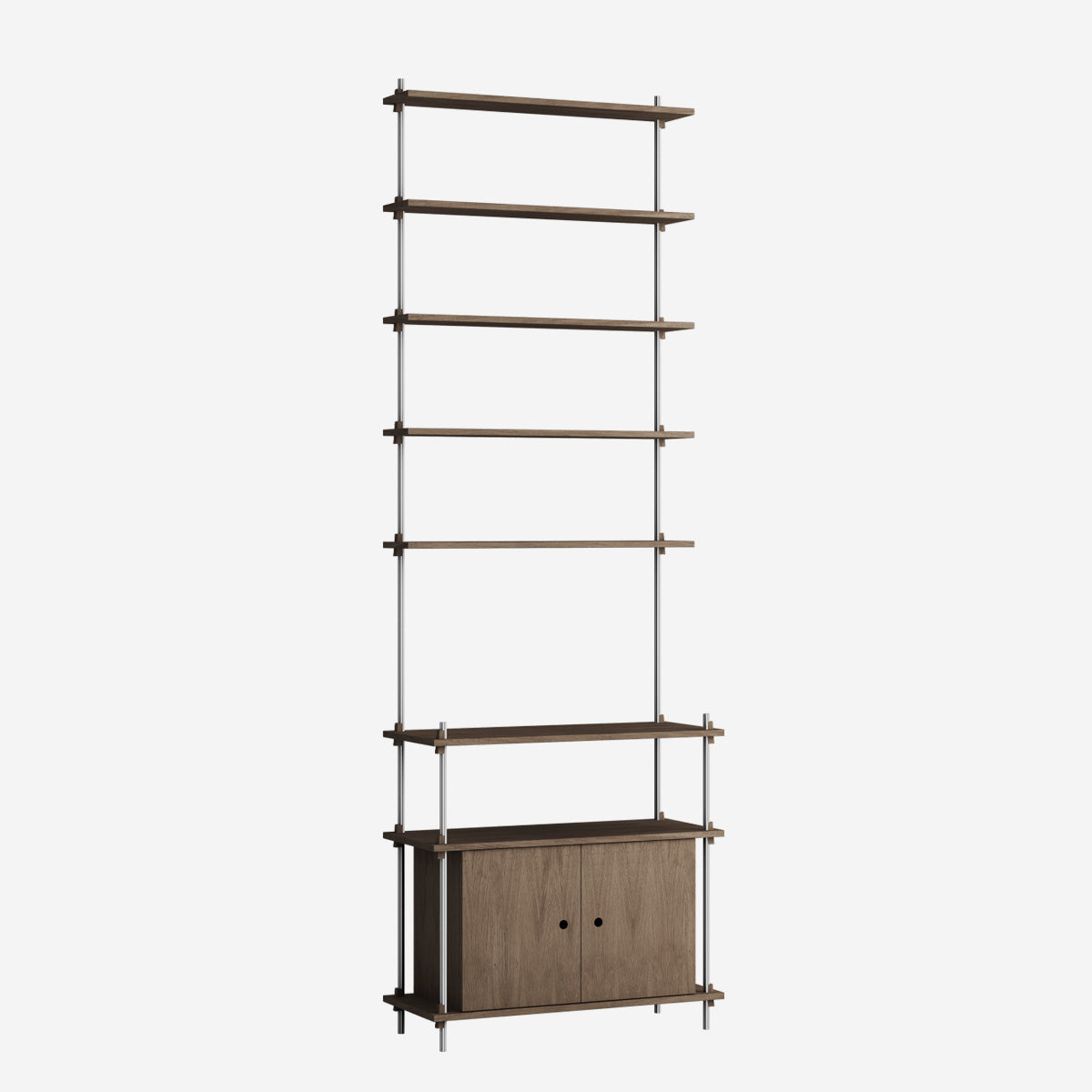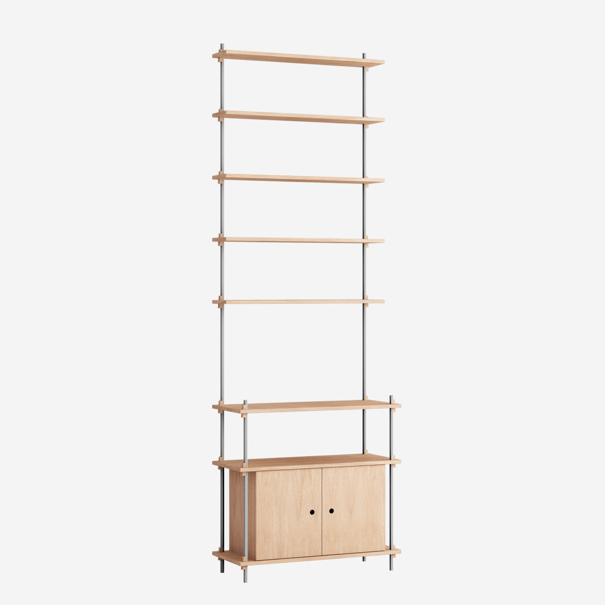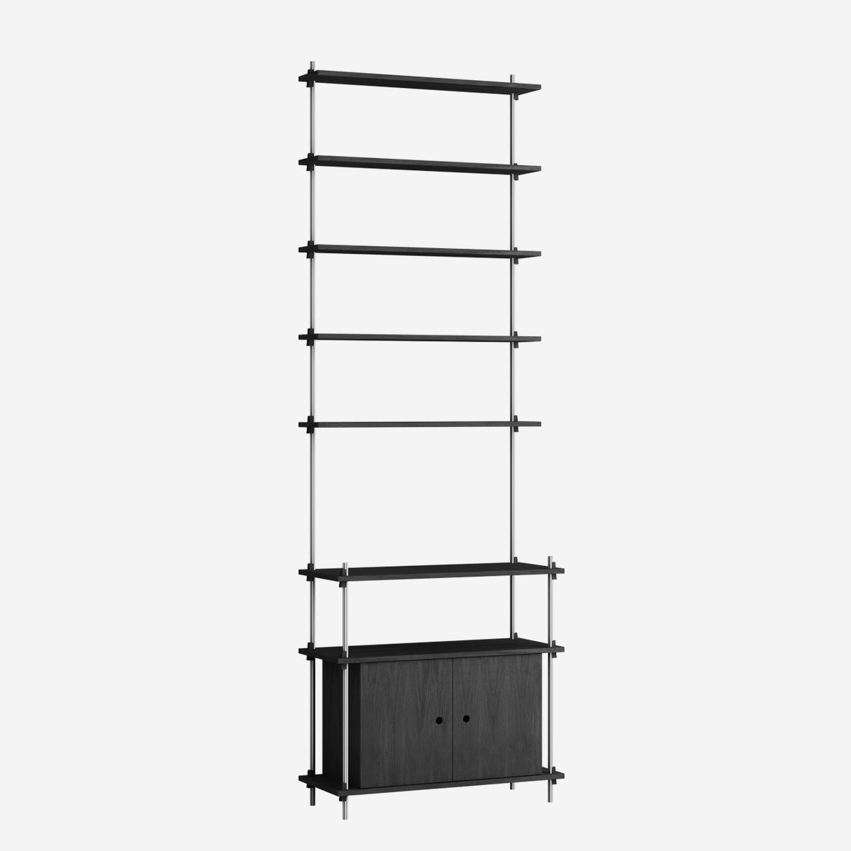 Mit dem MOEBE Shelving System hast du die volle Freiheit, dein eigenes, individuelles Regal zu bauen. Baue es so hoch wie du willst, so breit wie du es brauchst, baue es um Ecken herum oder überbrücke sogar verschiedene Ebenen. Das Shelving System kann als Raumteiler frei stehen oder klassisch an einer Wand platziert werden.