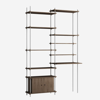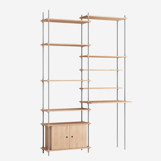 Mit dem MOEBE Shelving System hast du die volle Freiheit, dein eigenes, individuelles Regal zu bauen. Baue es so hoch wie du willst, so breit wie du es brauchst, baue es um Ecken herum oder überbrücke sogar verschiedene Ebenen. Das Shelving System kann als Raumteiler frei stehen oder klassisch an einer Wand platziert werden.