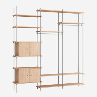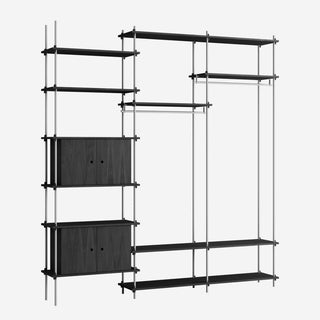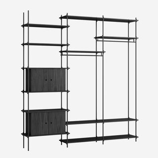 Mit dem MOEBE Shelving System hast du die volle Freiheit, dein eigenes, individuelles Regal zu bauen. Baue es so hoch wie du willst, so breit wie du es brauchst, baue es um Ecken herum oder überbrücke sogar verschiedene Ebenen. Das Shelving System kann als Raumteiler frei stehen oder klassisch an einer Wand platziert werden.