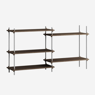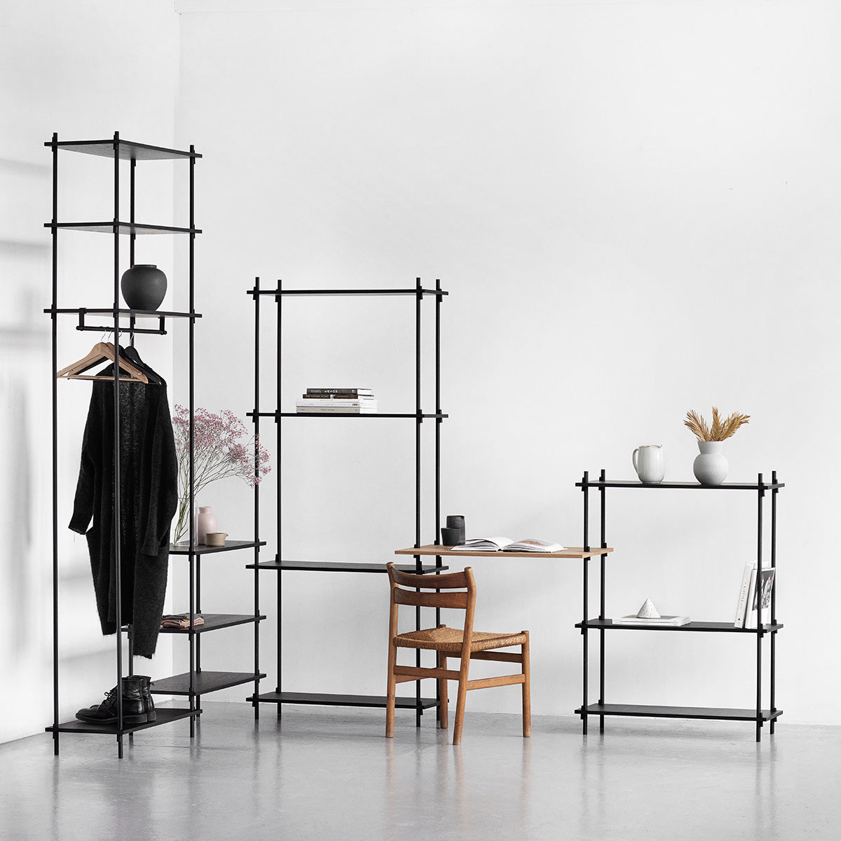 Mit dem MOEBE Shelving System hast du die volle Freiheit, dein eigenes, individuelles Regal zu bauen. Baue es so hoch wie du willst, so breit wie du es brauchst, baue es um Ecken herum oder überbrücke sogar verschiedene Ebenen. Das Shelving System kann als Raumteiler frei stehen oder klassisch an einer Wand platziert werden.