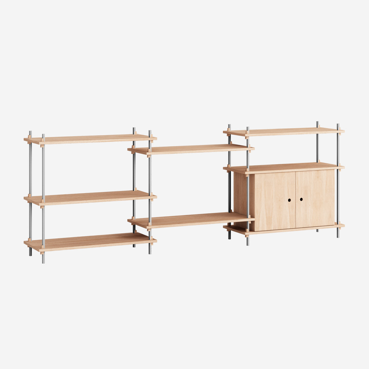 Mit dem MOEBE Shelving System hast du die volle Freiheit, dein eigenes, individuelles Regal zu bauen. Baue es so hoch wie du willst, so breit wie du es brauchst, baue es um Ecken herum oder überbrücke sogar verschiedene Ebenen. Das Shelving System kann als Raumteiler frei stehen oder klassisch an einer Wand platziert werden.
