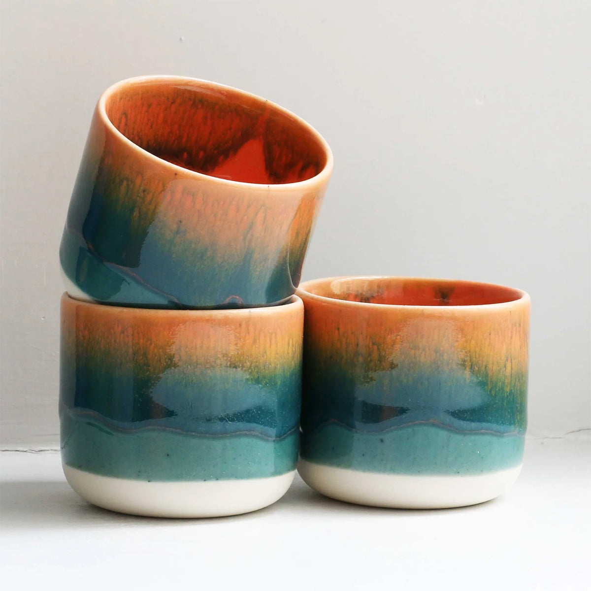 Die Sip Cup ist eine kleine handgemachte und -glasierte Porzellantasse für den schnellen Espresso, cremigen Cartado oder kleinen Tee am Abend. Du kannst sie aber auch für ganz kleine Pflänzchen benutzen oder als Gefäß für kleine Objekte oder Nahrungsmittel.