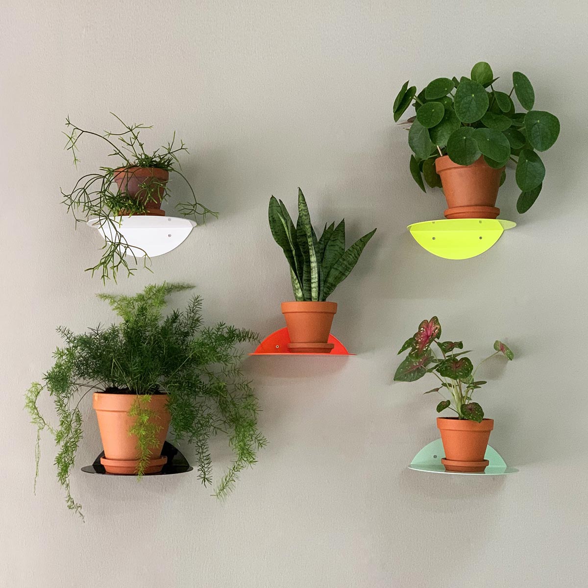 Setze einen Akzent auf die Wand mit einem Dot Shelf von kolor. Das kleine runde Wandregal aus pulverbeschichtetem Stahl ist perfekt für einen Blumentopf, kleine Bücher, eine Figur oder andere Dekoration. Es ist für alle möglichen Räume denkbar.