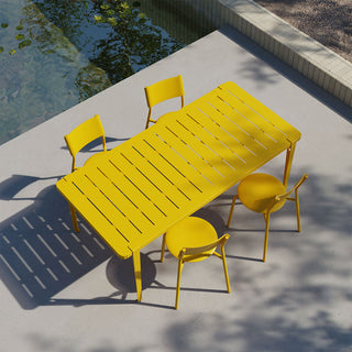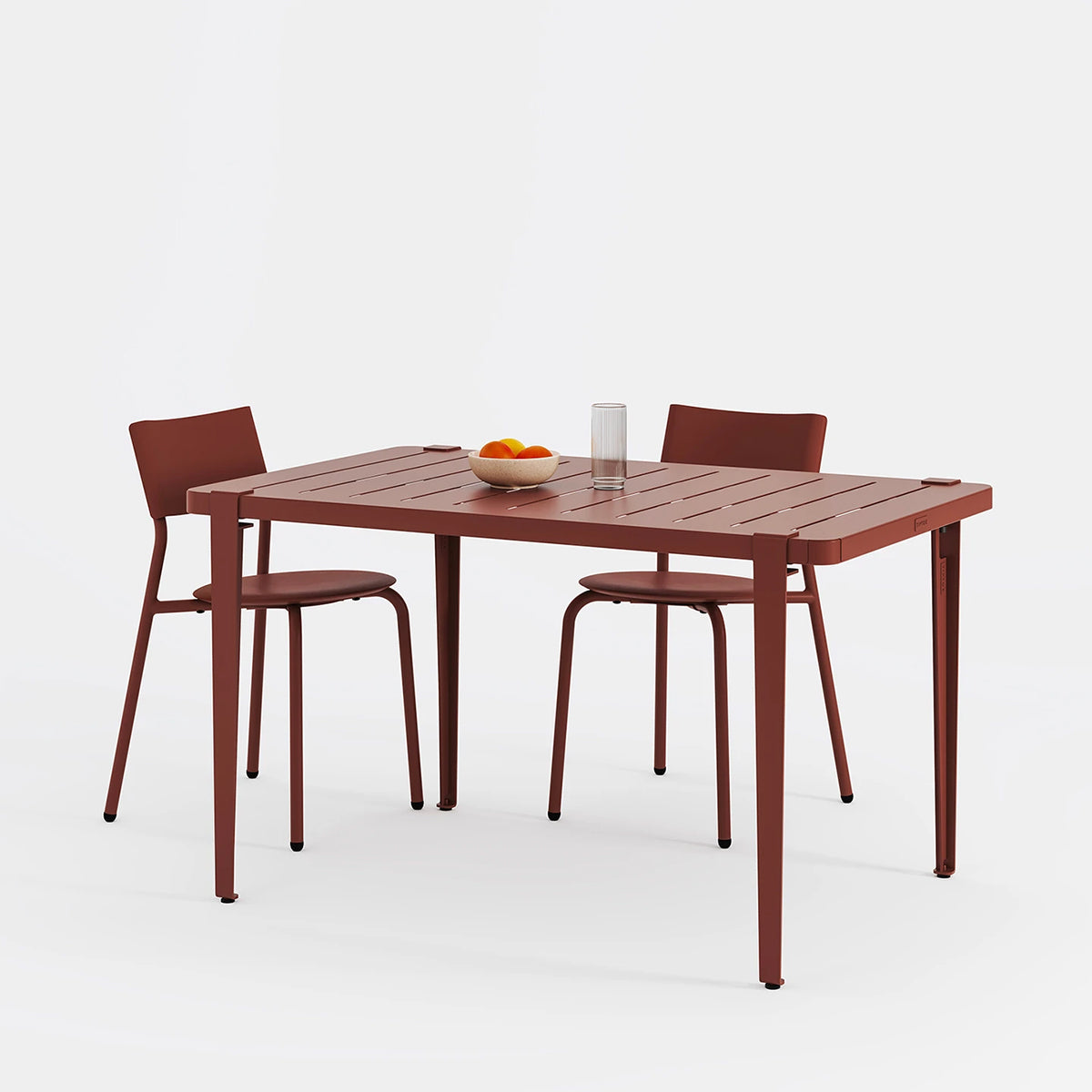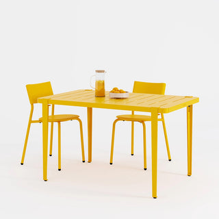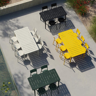Die MIDI-Kollektion ist die erste Outdoor-Möbelserie von TIPTOE, 100% in Europa hergestellt. Um die Langlebigkeit der Produkte zu gewährleisten, gibt es eine hochwertige Korrosionsschutzbehandlung für die Stahlelemente sowie eine UV-Schutzbehandlung für den recycelten Kunststoff der Stühle.