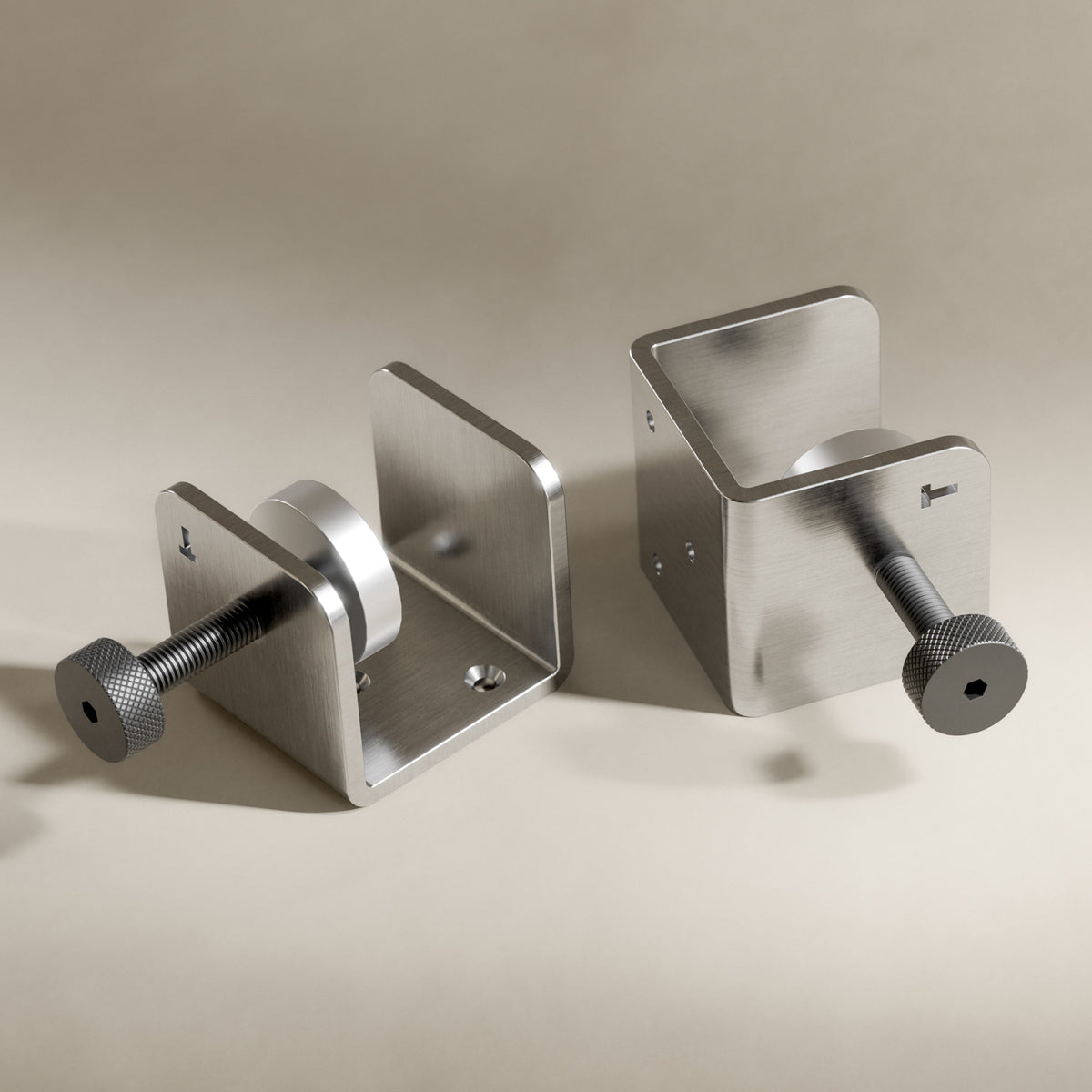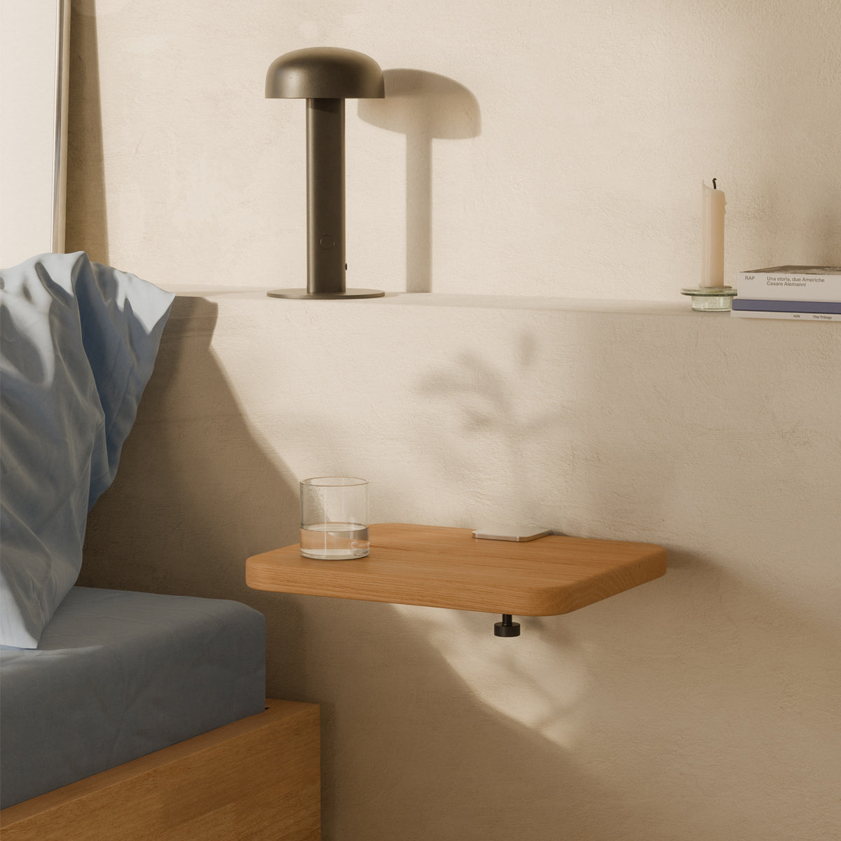 Die Brackets lassen sich mit Holz, Stein oder Marmor kombinieren und passen sich ganz unterschiedlichen Räumen an. In Kombination mit den Tischbeinen von Tiptoe entstehen sogar kleine, wandmontierte Tische – zum Arbeiten, für den Flur oder als schmale Frühstücksbar.