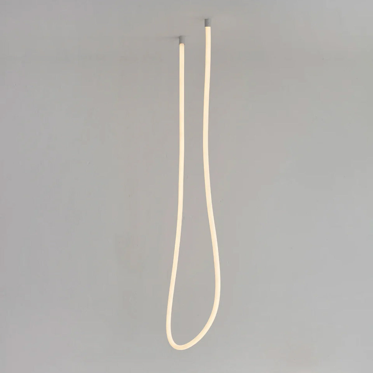 Eine Lampe, die man nicht einfach einschaltet, sondern inszeniert: Das Flex Mount Large von Studio About ist ein 4 Meter langes LED-Leuchtrohr, weich, beweglich und formbar. An Wand oder Decke montiert, lässt es sich biegen, schlingen, hängen – und verwandelt sich dabei in eine Lichtinstallation, die irgendwo zwischen Kunstobjekt und funktionaler Beleuchtung lebt.