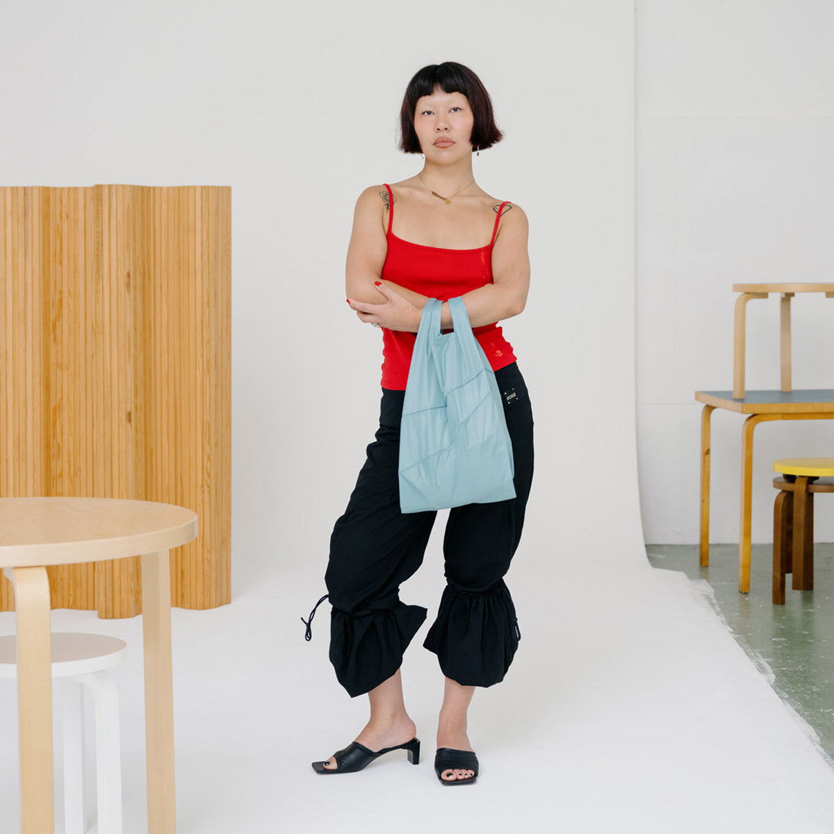 The New Shoppingbag besteht aus hochwertigem Bluesign®-zertifiziertem und 100% recyceltem Ripstop-Nylon. Das Material ist wasserabweisend, leicht und gleichzeitig super stark.
