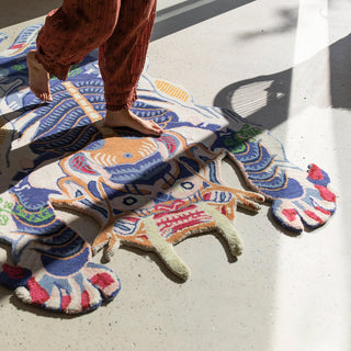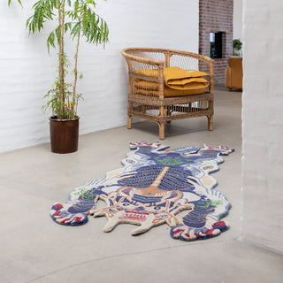 The Dragon Rug Small by Bongusta is hand-tufted in India. The craft has been passed down through generations and the result is beautifully crafted rugs with lots of detail. The dragon is a traditional motif that is often seen in Asia. Each Dragon Rug has its own small details that are due to the "signature" of the respective weaver.