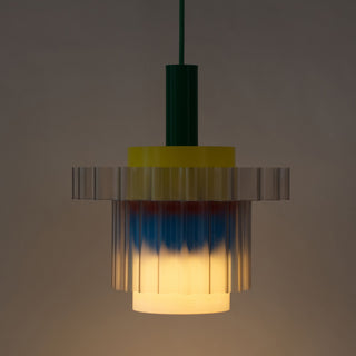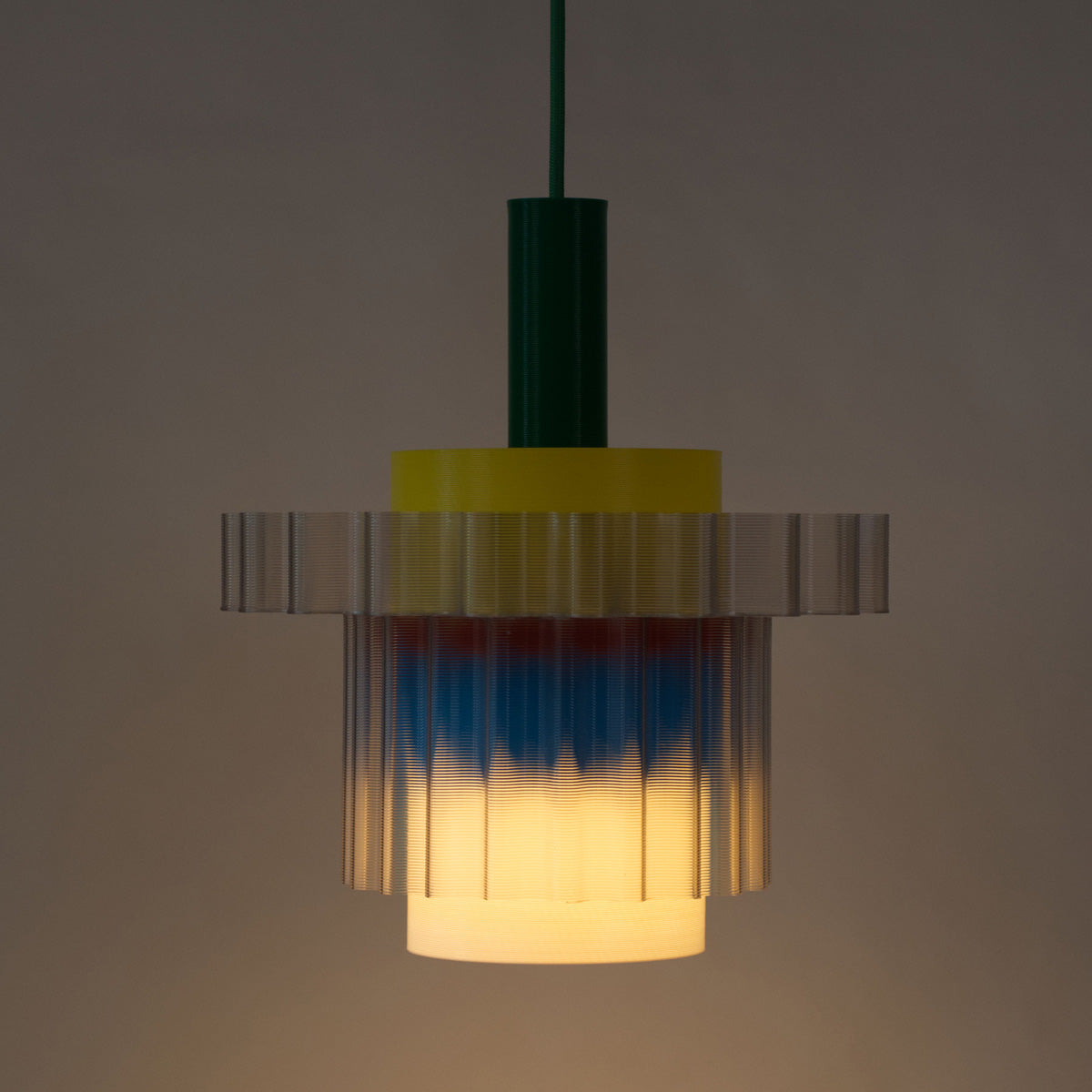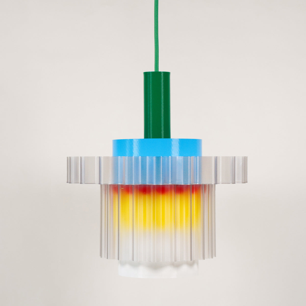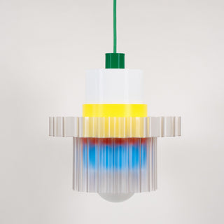 The Gigi lighting collection by French designers warren + laetitia consists of a series of colorful modular pendant lights. The Gigi Lamp XL is assembled from six interchangeable parts to create the final shape.