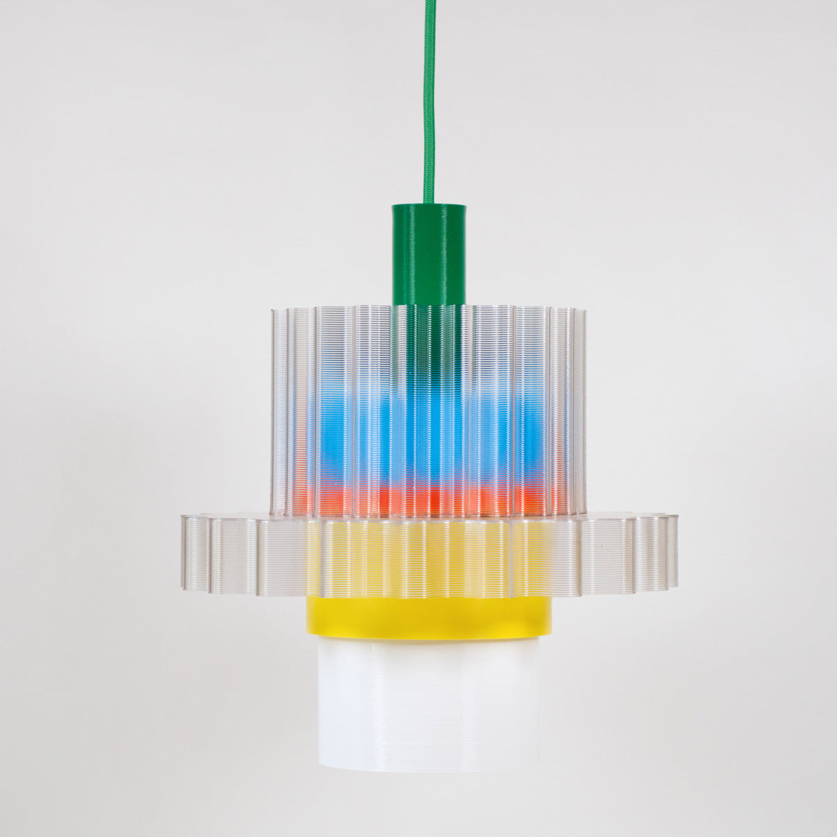 The Gigi lights are manufactured using 3D printing in the Paris studio from recycled and recyclable plastic bottles and industrially compostable bioplastic made from corn starch (rPETG + PLA).