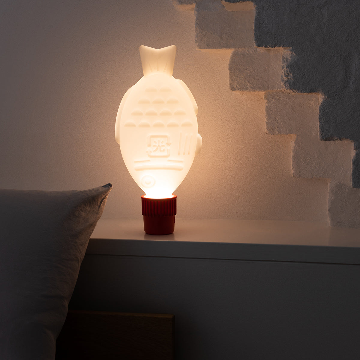 The playful LED light in the shape of a soy fish is dimmable via touch control and charges via USB-C. This portable light accompanies you wherever you need it. Or it can be placed in a beautiful permanent spot in your home – the slim light fits on any windowsill.