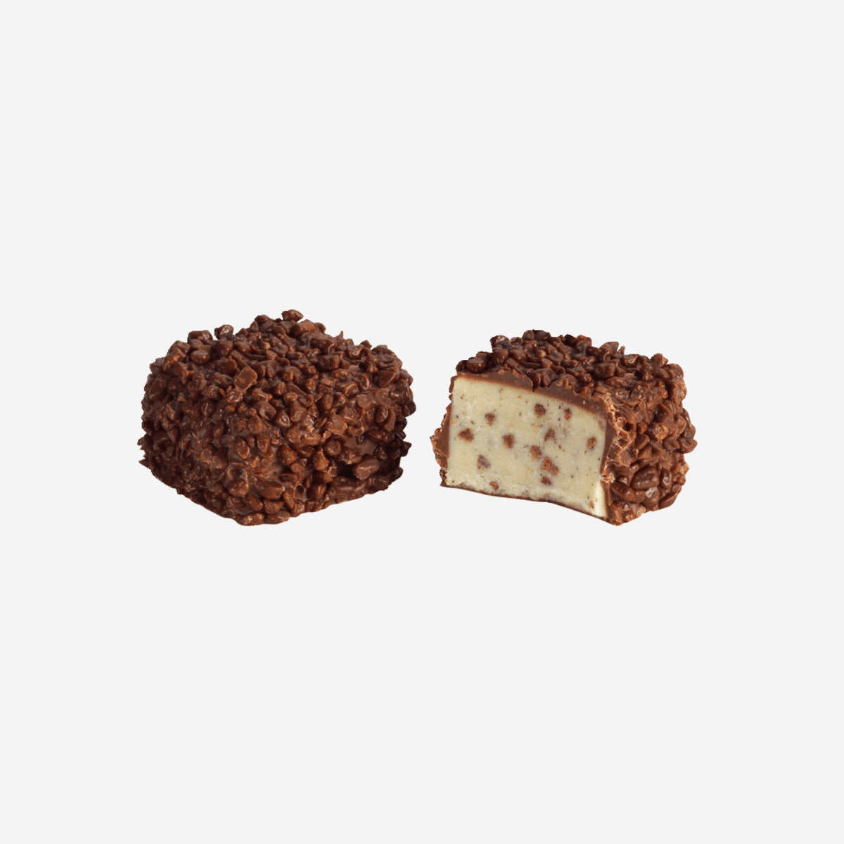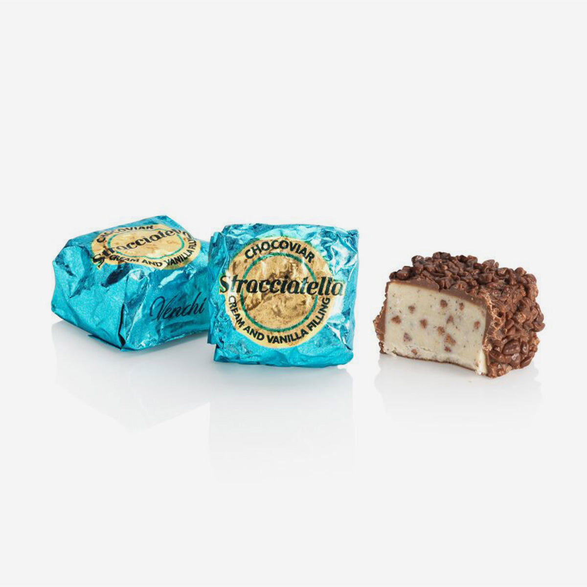 Chocoviar Stracciatella offers an irresistible explosion of flavours and textures in just one bite: the delicious cream filling, enriched with cocoa nibs and chopped vanilla pods, enveloped in the sweetness of milk chocolate and the crunchiness of Chocoviar milk grains.