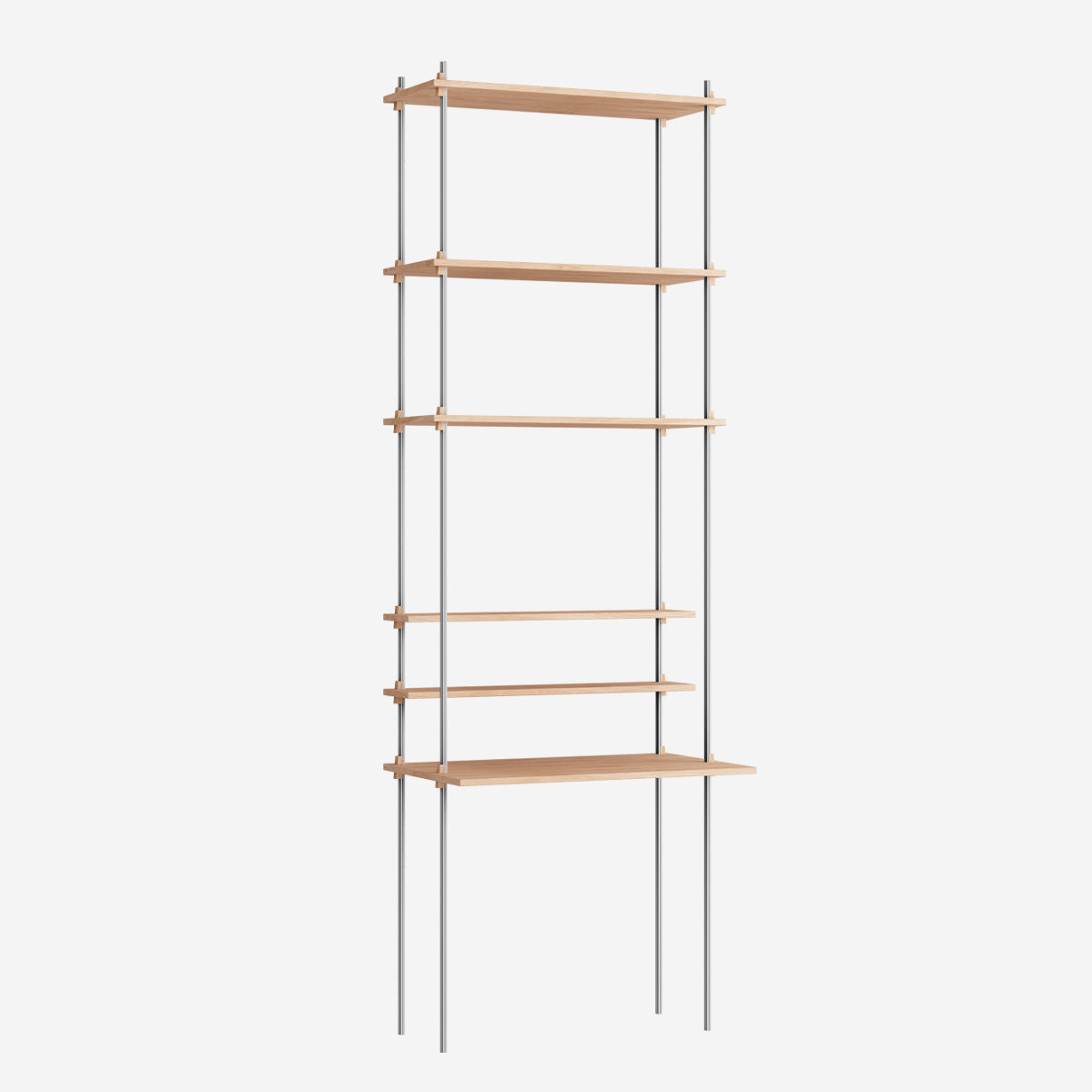 Mit dem MOEBE Shelving System hast du die volle Freiheit, dein eigenes, individuelles Regal zu bauen. Baue es so hoch wie du willst, so breit wie du es brauchst, baue es um Ecken herum oder überbrücke sogar verschiedene Ebenen. Das Shelving System kann als Raumteiler frei stehen oder klassisch an einer Wand platziert werden.