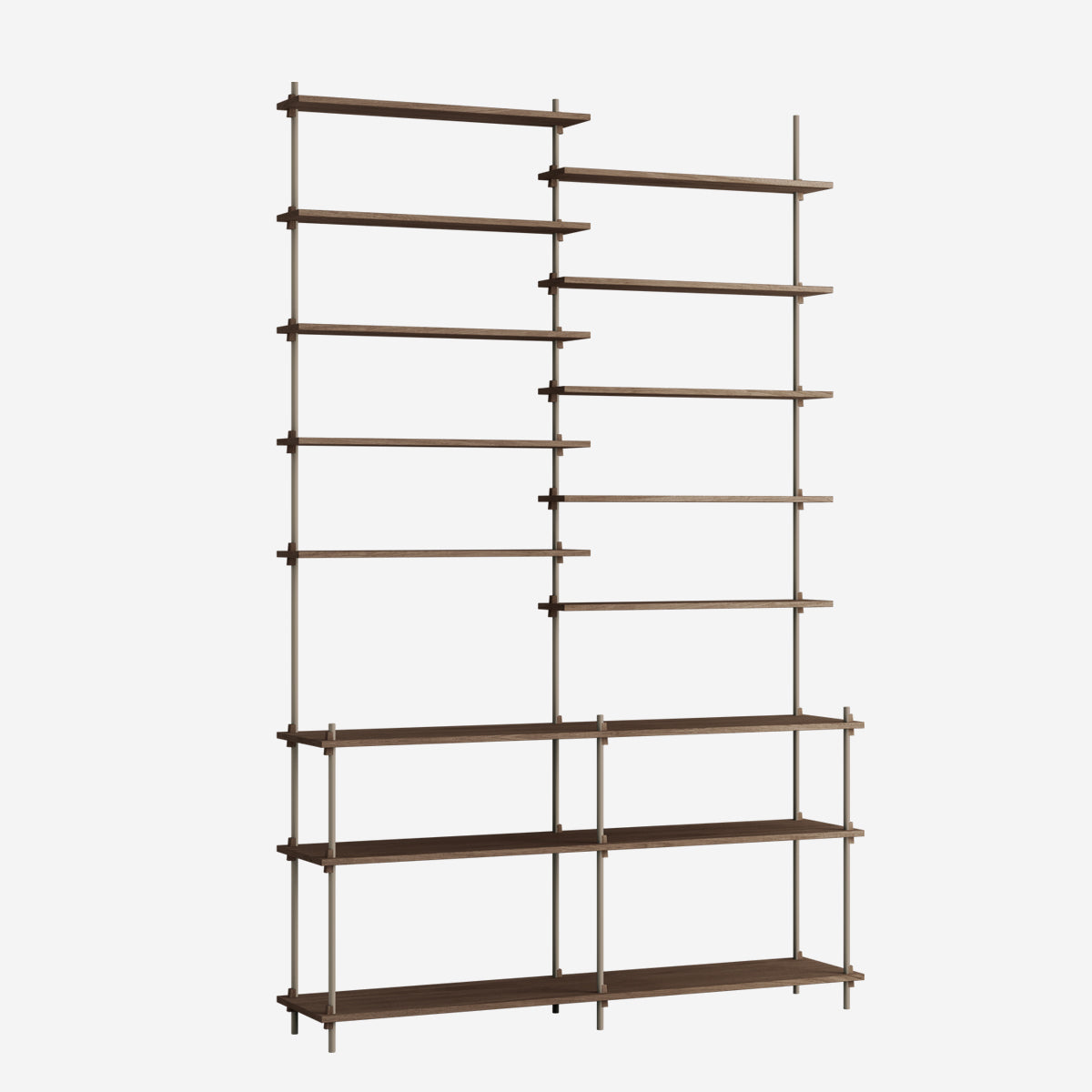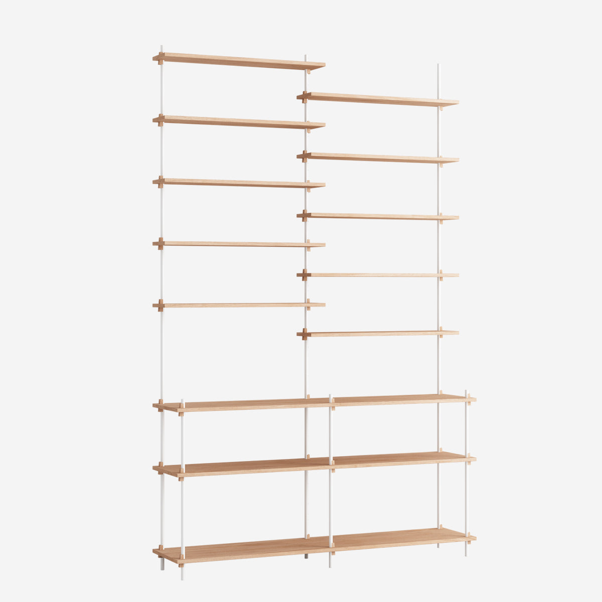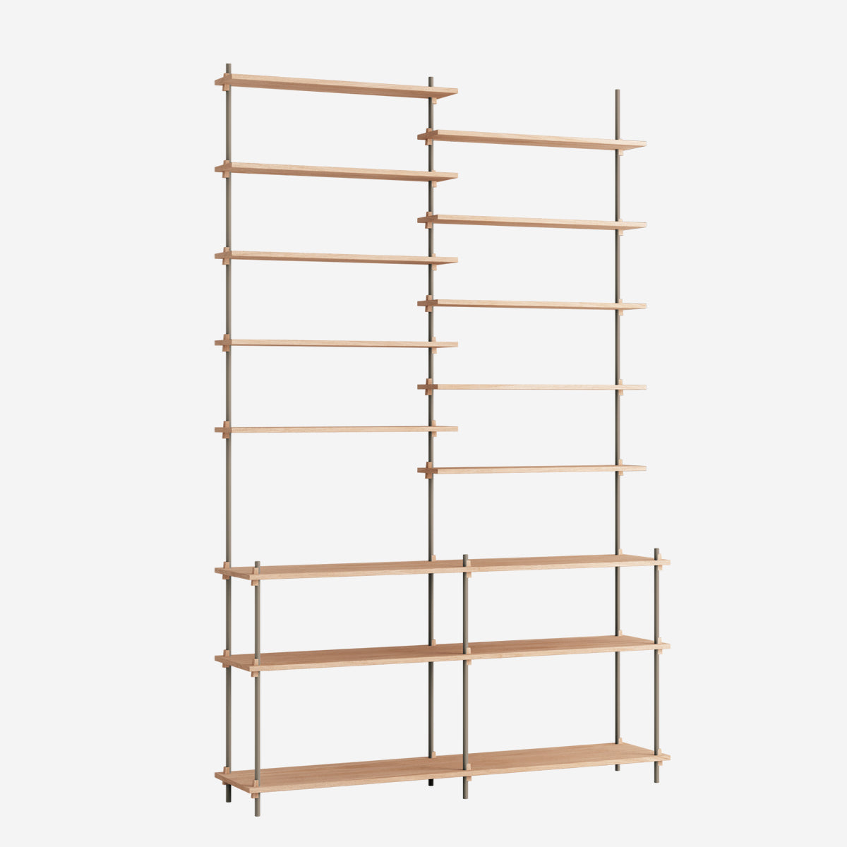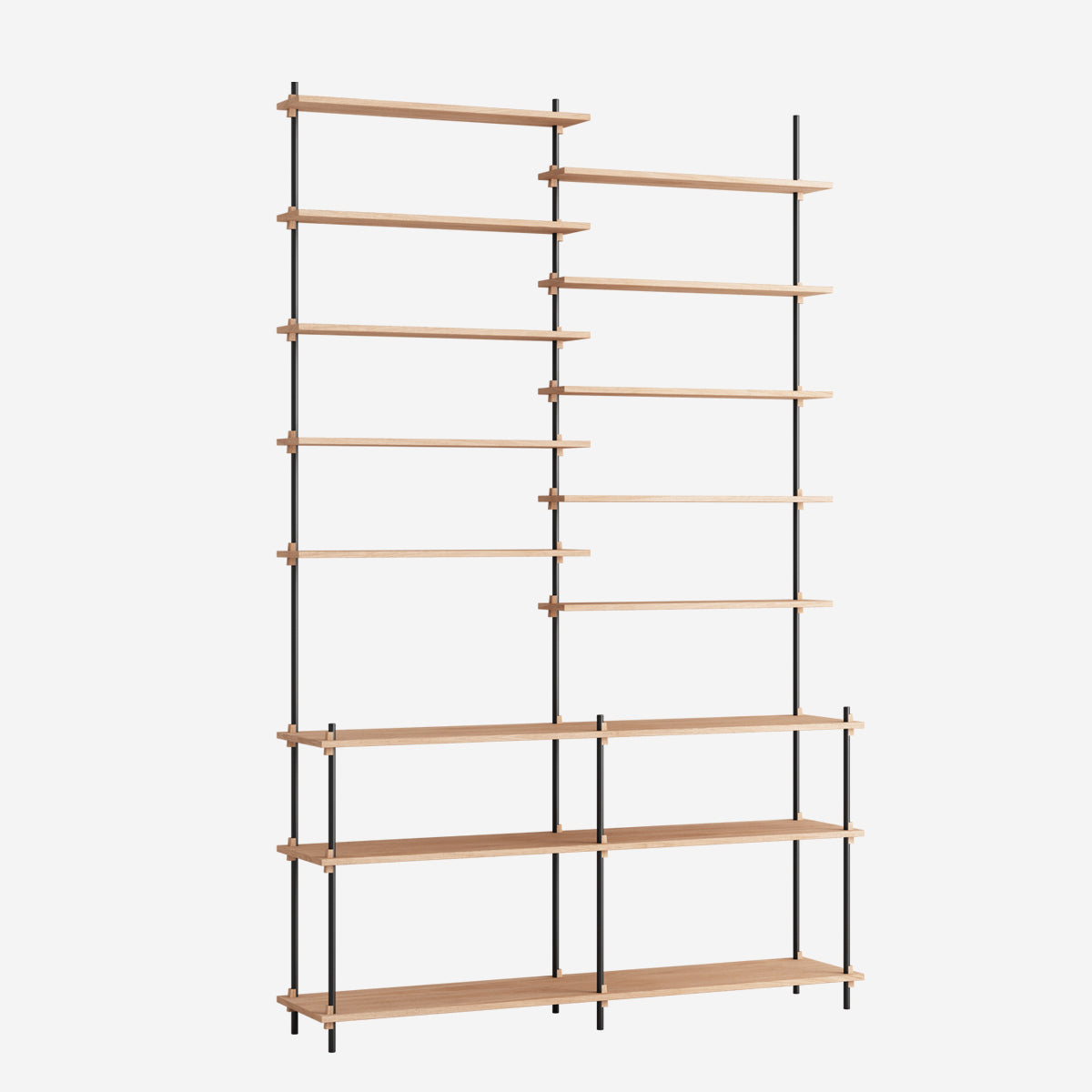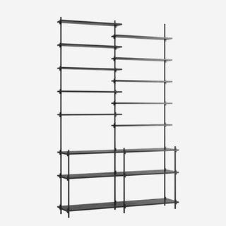 Mit dem MOEBE Shelving System hast du die volle Freiheit, dein eigenes, individuelles Regal zu bauen. Baue es so hoch wie du willst, so breit wie du es brauchst, baue es um Ecken herum oder überbrücke sogar verschiedene Ebenen. Das Shelving System kann als Raumteiler frei stehen oder klassisch an einer Wand platziert werden.