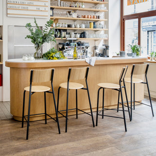 Passend zur Sitzhöhe von 65 cm empfehlen wir die TIPTOE Tischbeine in 90 cm und die Wall Brackets, um eine stilistisch perfekt abgestimmte Theke zu bauen. Natürlich passen die Bar Stools 65 cm auch perfekt zu jeder anderen Theke oder jedem anderen Tisch in entsprechender Höhe.