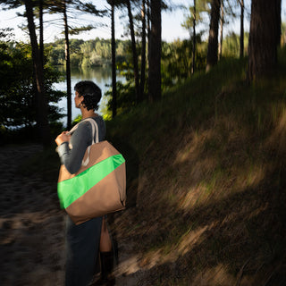 The New Tote Bag: this bag is designed for so much more than just essentials. It's an ideal companion for work, travel and of course everyday use. Made from Susan Bijl's signature durable, waterproof material, it offers the perfect mix of size and functionality. It comes in two sizes, each with a spacious interior, an internal zip pocket and a padded laptop compartment. The New Tote Bag has handles in two lengths for comfortable carrying.