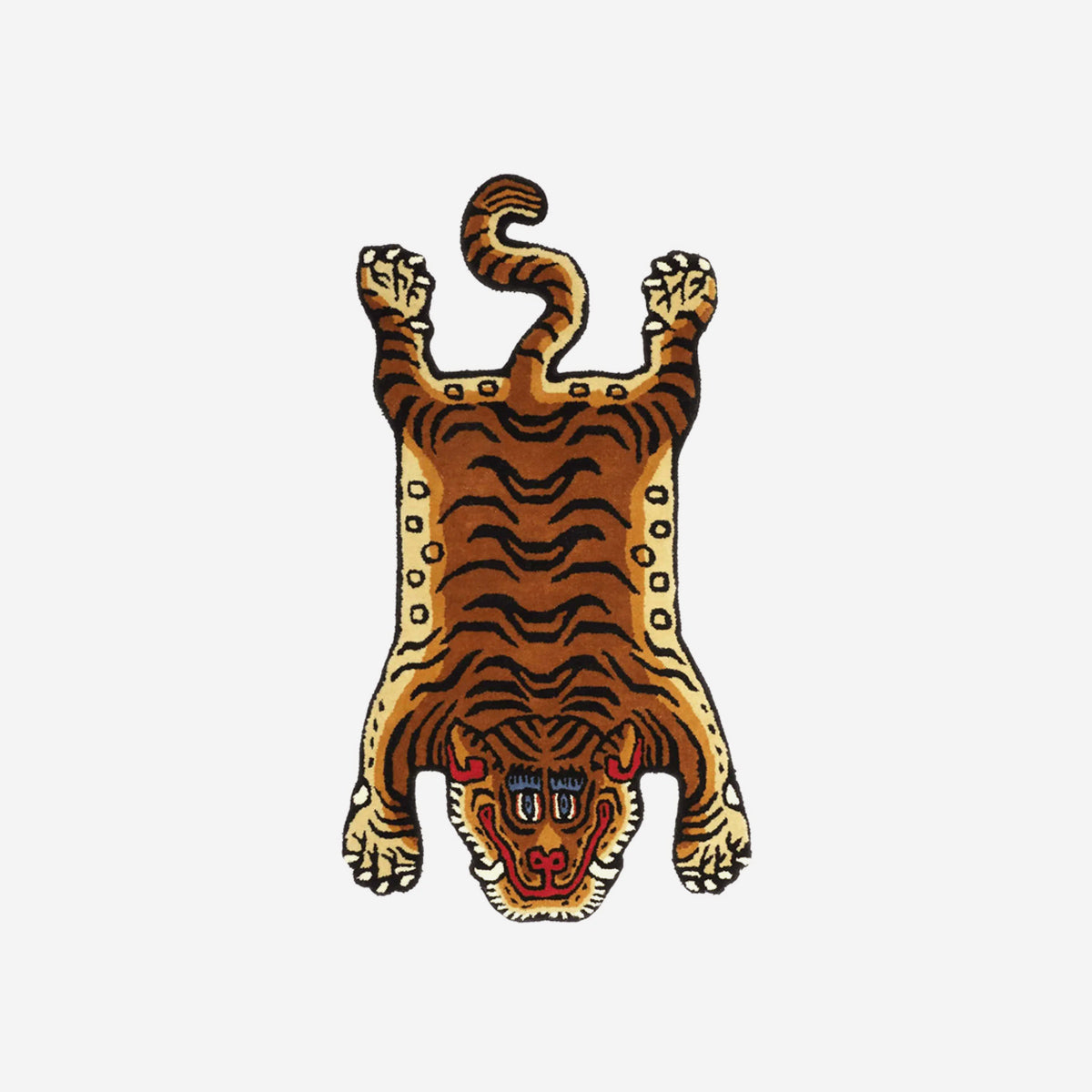 The rug is hand tufted in India. The craft has been passed down through generations and the result is beautifully crafted rugs with lots of detail. The Burmese tiger is a traditional motif that is often seen in Asia. Each Tiger Rug has its own small details that are due to the "signature" of the individual weaver.