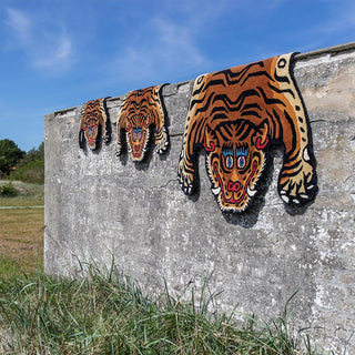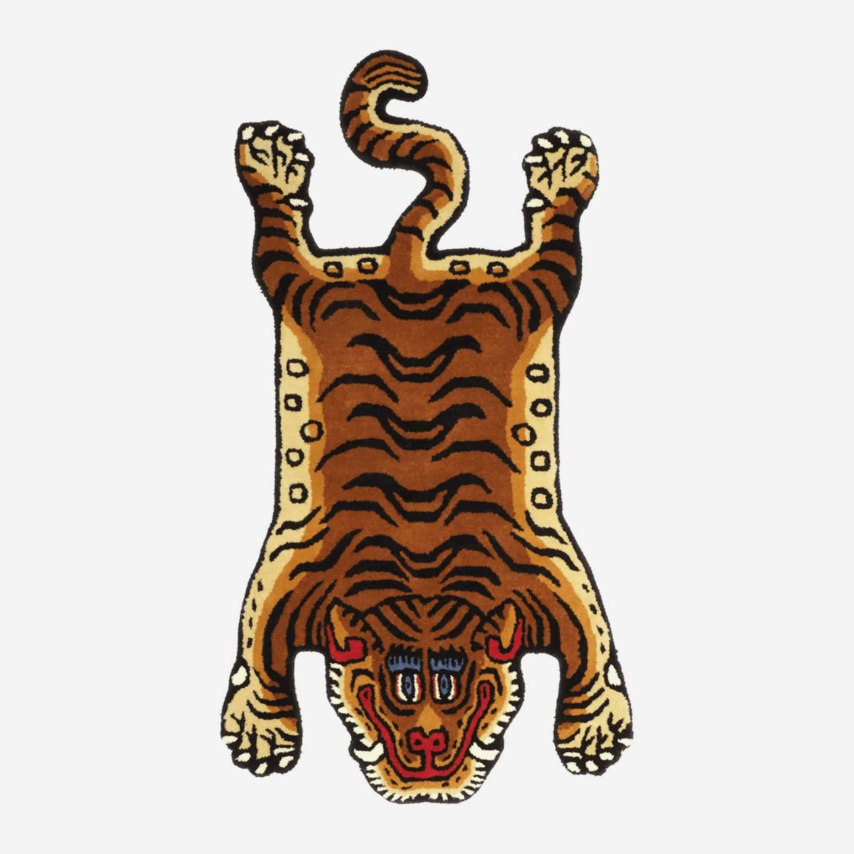 The rug is hand tufted in India. The craft has been passed down through generations and the result is beautifully crafted rugs with lots of detail. The Burmese tiger is a traditional motif that is often seen in Asia. Each Tiger Rug has its own small details that are due to the "signature" of the individual weaver.