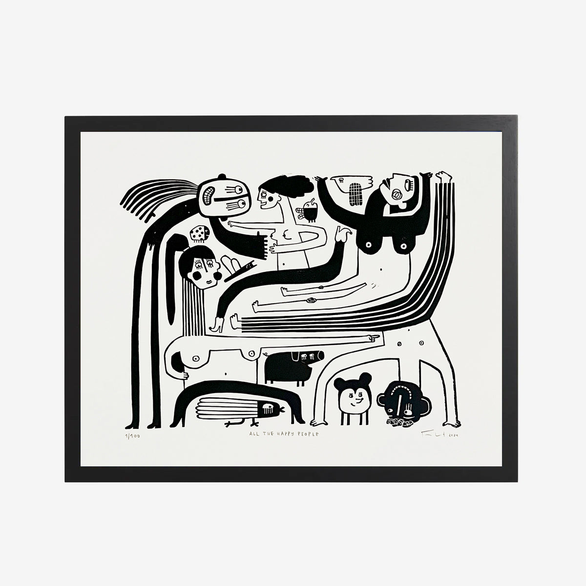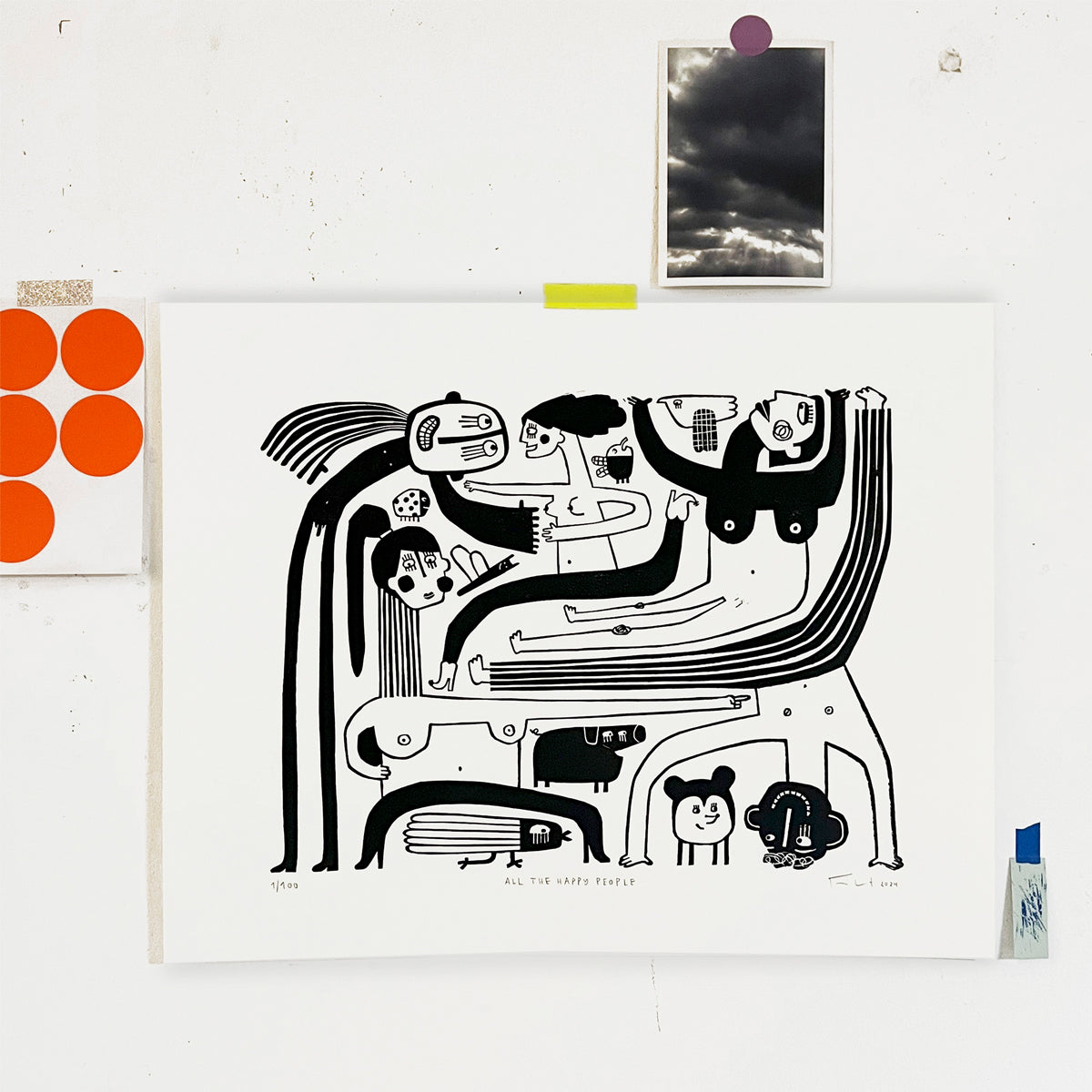 All The Happy People Linoldruck ist ein limitierter Linoldruck auf naturweißem Zeichenpapier.