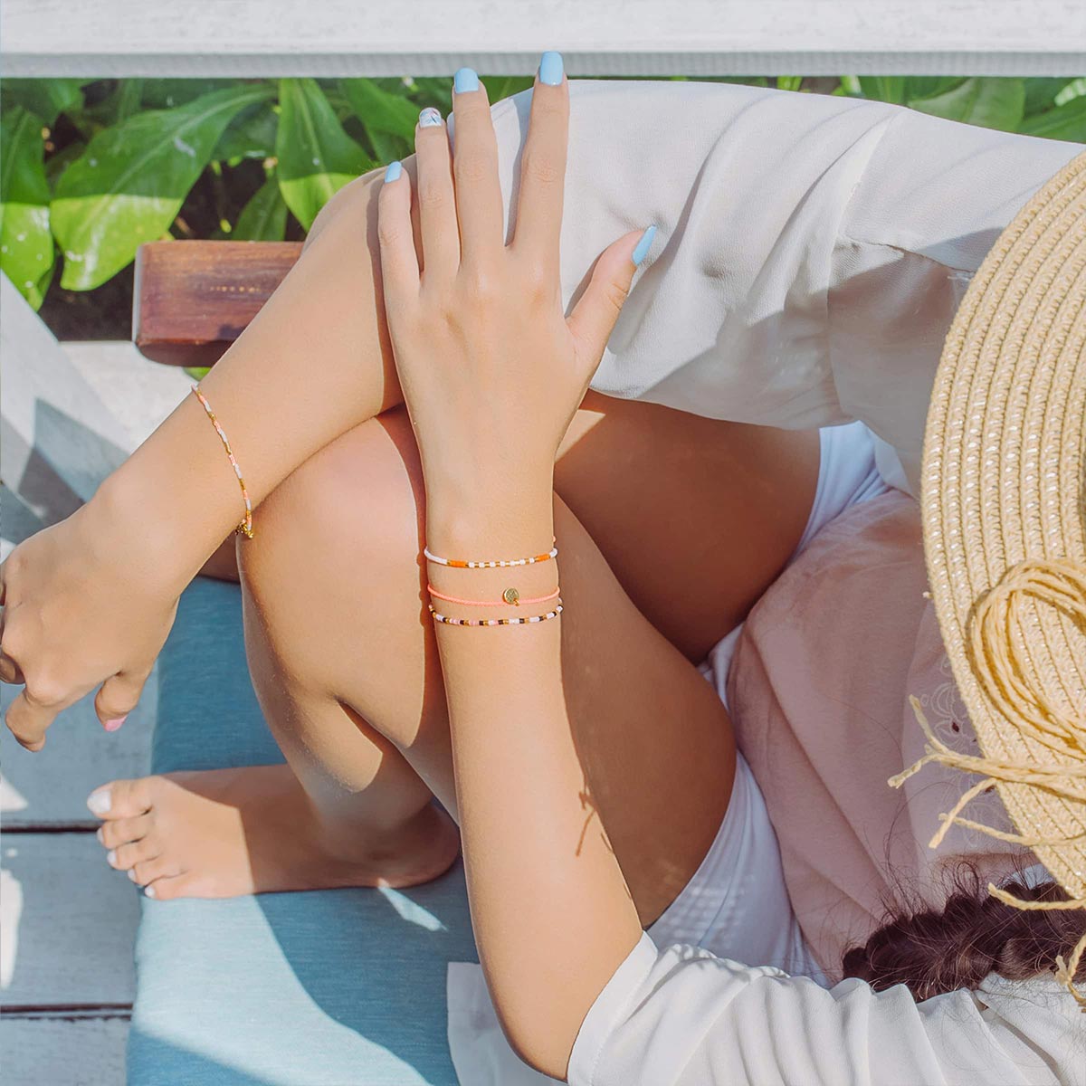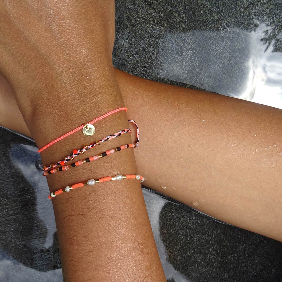 Das gezwirbelte True Temple Armband ist inspiriert vom traditionellen Tridatu Tempel-Armband, welches jeder gläubige Hindu in Bali trägt. Es besteht aus drei ineinander gedrehten Stoffbändchen – traditionell in Rot, Schwarz und Weiß für die Götter Brahma, Vishnu und Shiva – und soll dem Träger Schutz gewähren. Die True Temple Armbändchen sind vor allem auch ein feiner Begleiter durch den Sommer!