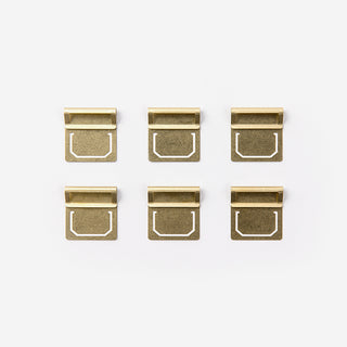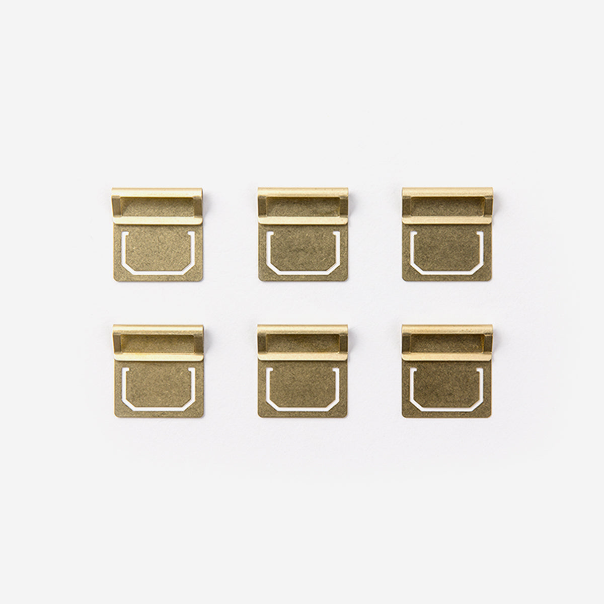 Die TRAVELER’S Company Brass Serie ist eine schöne Produktreihe aus hochwertigem Messing. Mit der Zeit bekommen die Produkte eine Patina, da sich die Messing Oberfläche verändert. Die Clips sind 27 × 28 mm groß, in jeder Packung sind 6 Clips enthalten.