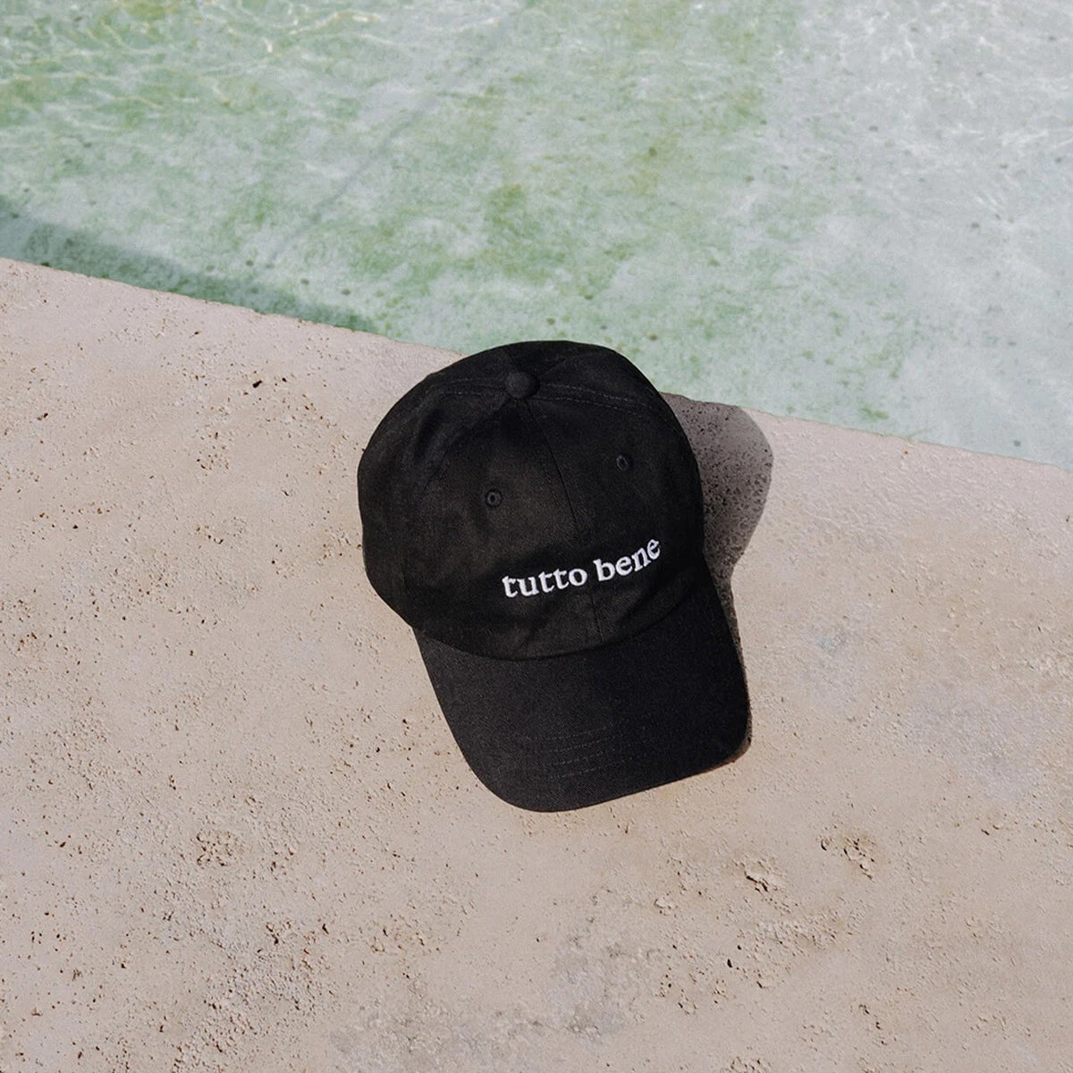 Das Bier ist kalt, die Freunde sind am Start und die Pizza ist bestellt. Für solche Momente hat Studio Ciao die tutto bene Cap entworfen. Sie besitzt einen gebogenen Schirm und lässt sich dank verstellbarem Riemen an jede Kopfform anpassen.