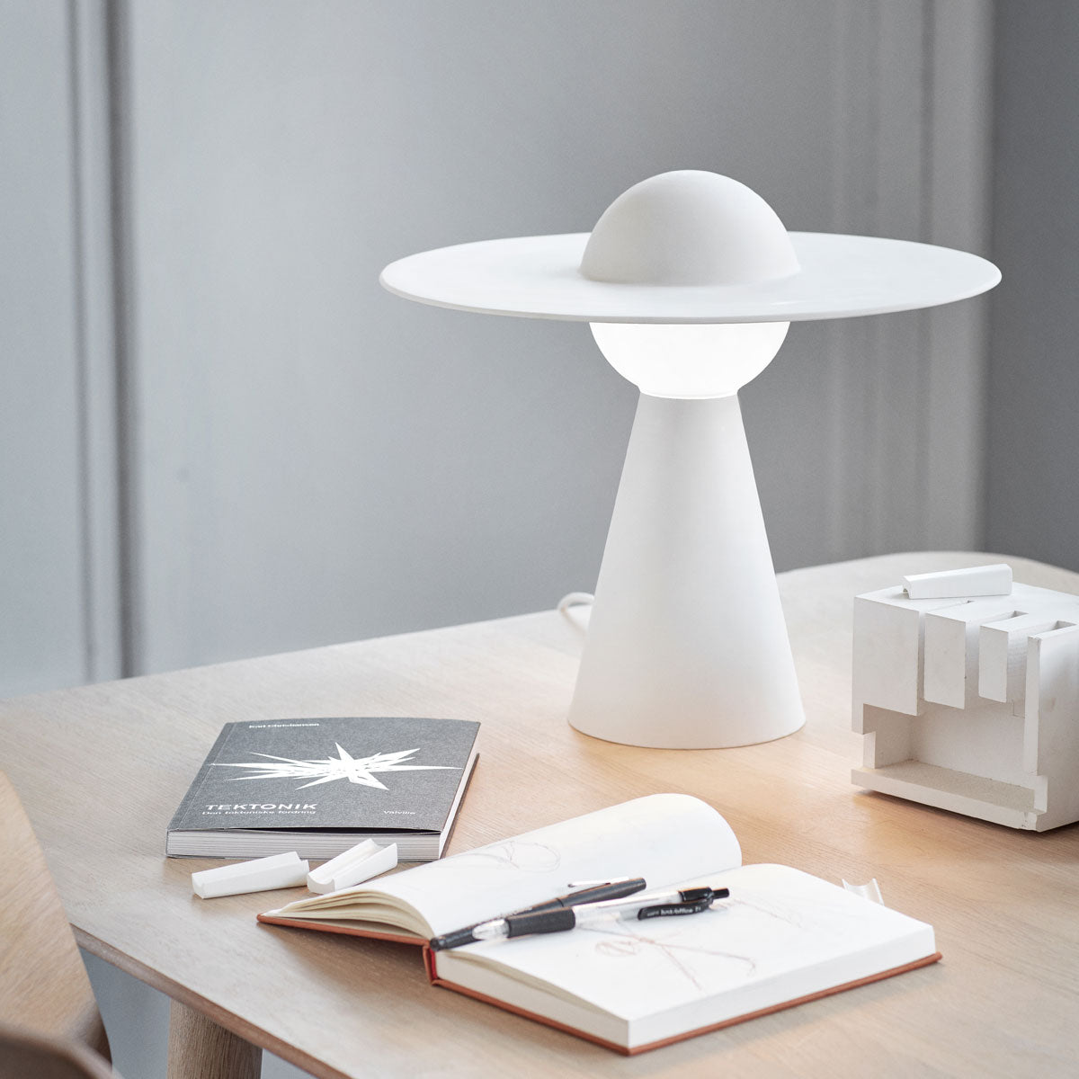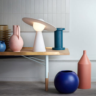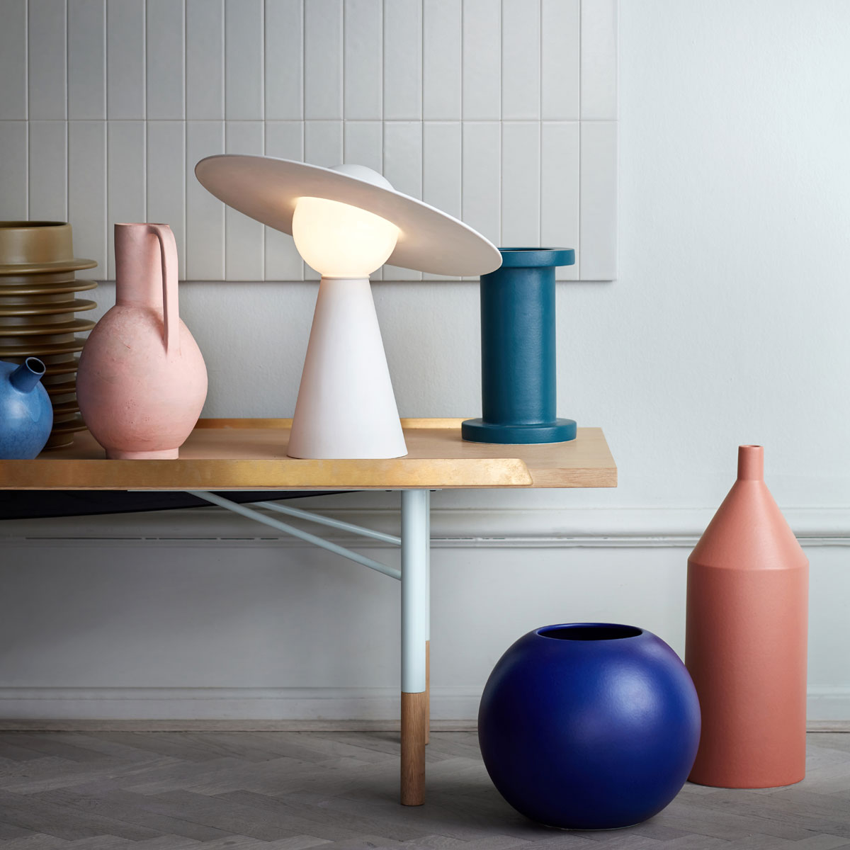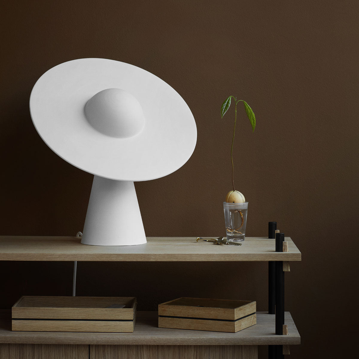 Die Ceramic Table Lamp hat eine skulpturale Form, die in alle Richtungen leuchten kann. Mit einer einfachen Handbewegung kannst du den Lampenschirm in jede gewünschte Richtung auf der Glühbirne verschieben und das Licht damit nach Belieben lenken. Die Lampe passt perfekt auf ein Regal, eine Fensterbank oder einen Beistelltisch und eignet sich sowohl als direkte Beleuchtung als auch als Hintergrundlicht.