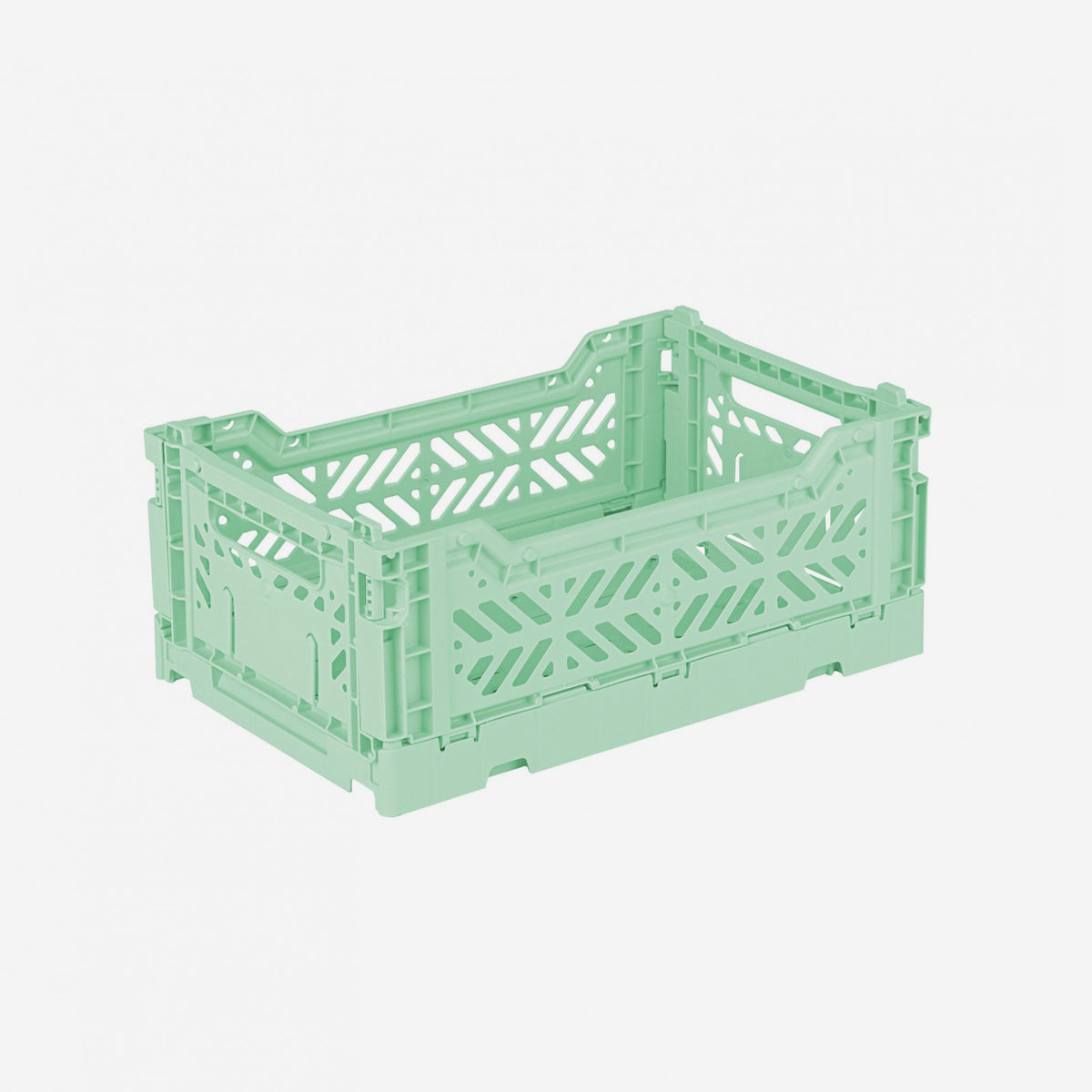 Es gibt die Crates in verschiedenen Größen und in einer Vielzahl von bunten Tönen, die sich zu wunderschönen Farbpaletten kombinieren lassen. Alle Klappboxen (auch unterschiedlicher Marken) sind stapelbar.
