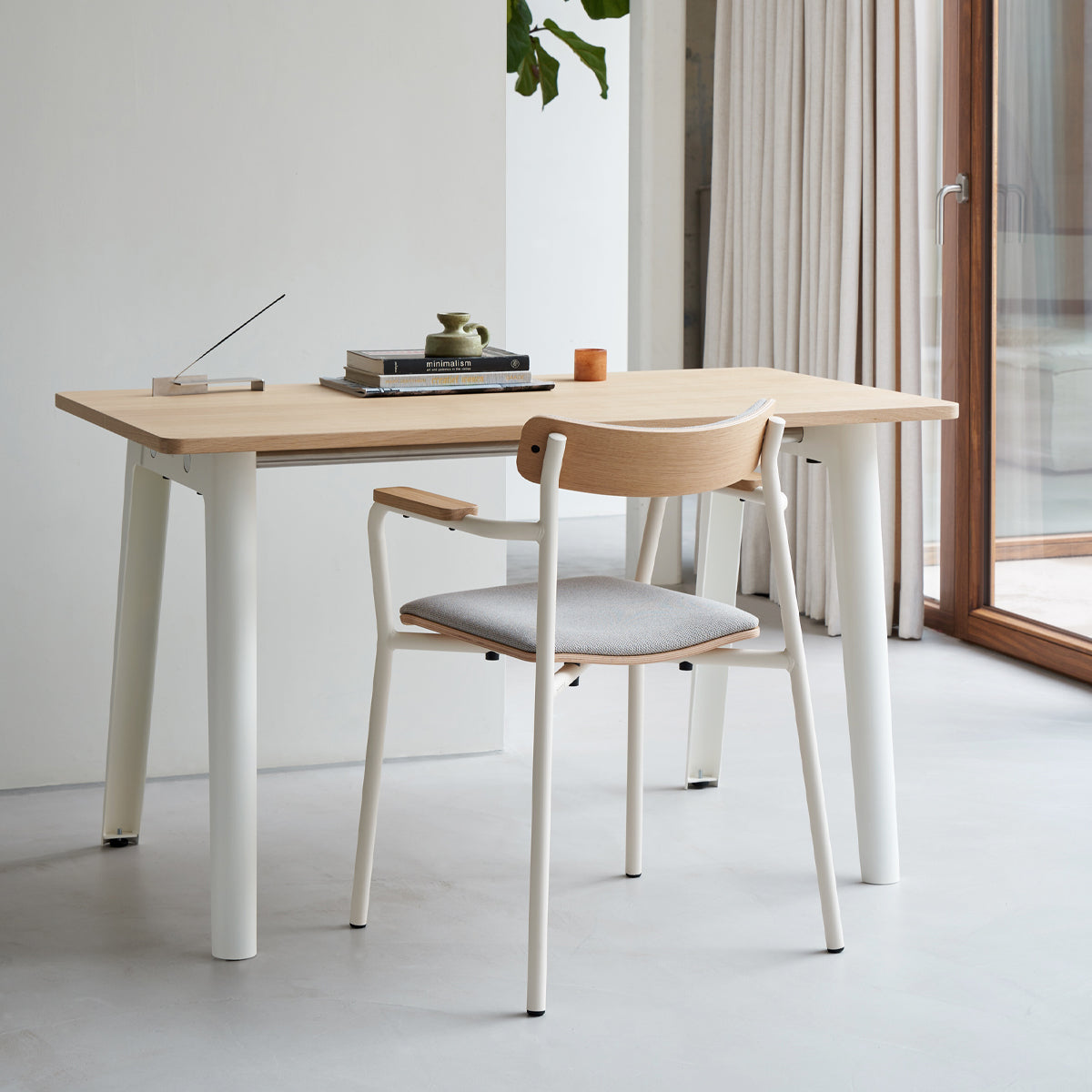 Der Stuhl ÉTUDE von Tiptoe ist eine gelungene Neuinterpretation eines klassischen Designs. Mit seiner klaren Linienführung und durchdachten Details vereint er Ästhetik und Komfort auf eine subtile Weise. Das Gestell aus pulverbeschichtetem Stahl und die Holzfläche aus natürlicher Eiche oder gebeizter Buche bilden einen harmonischen Kontrast, der sich sowohl in modernen als auch in klassischen Interieurs gut macht.