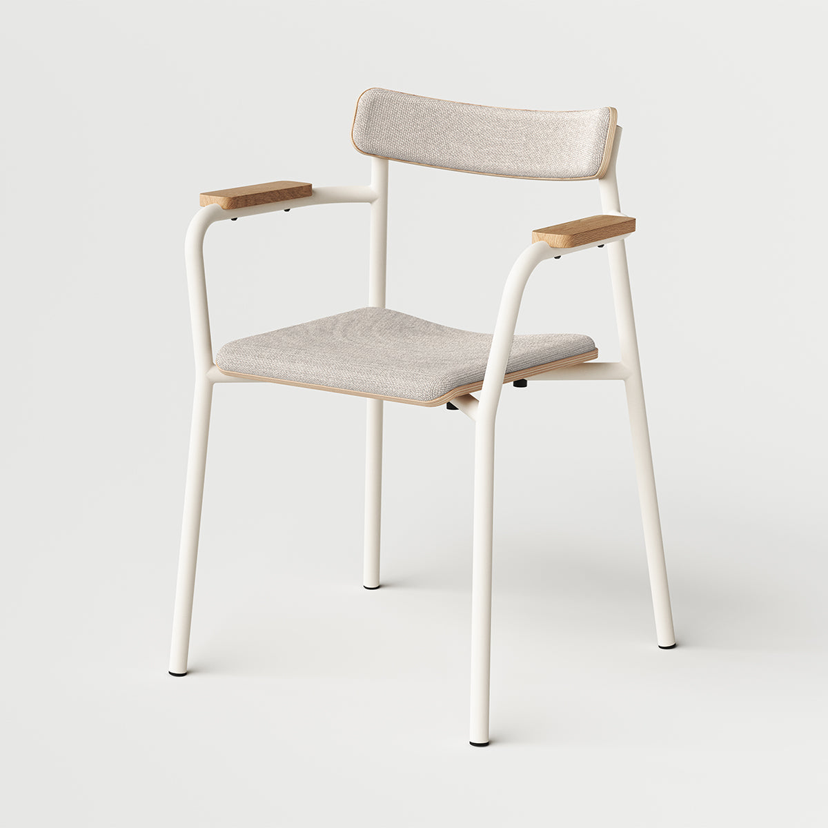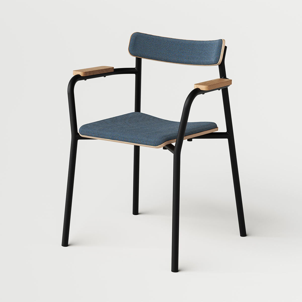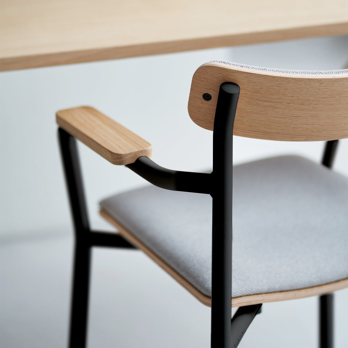 Die sanften Kurven der Sitzfläche und der Rückenlehne bieten nicht nur Komfort, sondern auch einen angenehmen Gegensatz zur geometrischen Strenge des Stuhlgestells. Der ÉTUDE ist in verschiedenen Varianten erhältlich: als Standard- oder gepolsterte Version, mit oder ohne Armlehnen. So lässt er sich ganz nach Bedarf anpassen – ob rund um den Esstisch, als bequemer Schreibtischstuhl oder in einer entspannten Lounge-Ecke.
