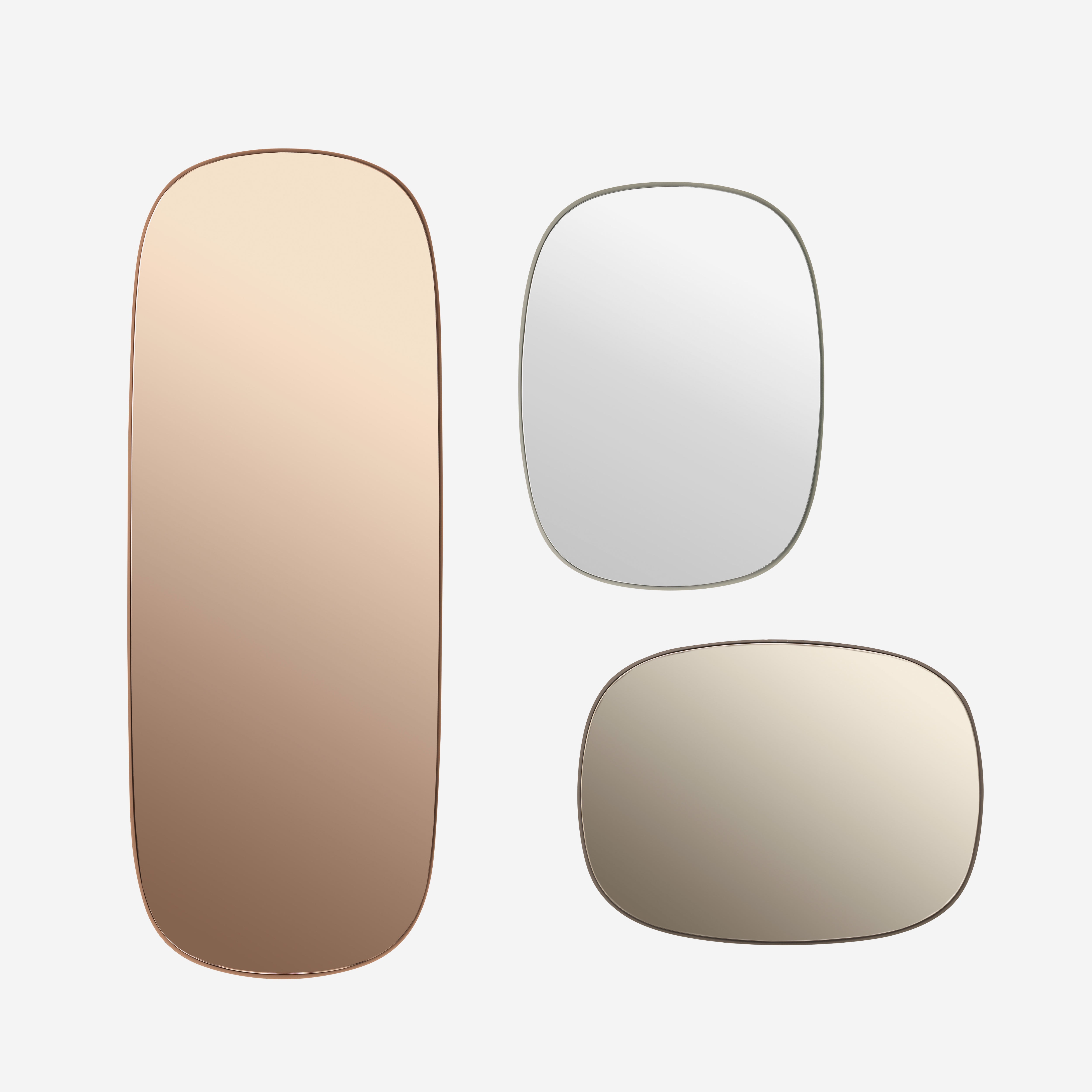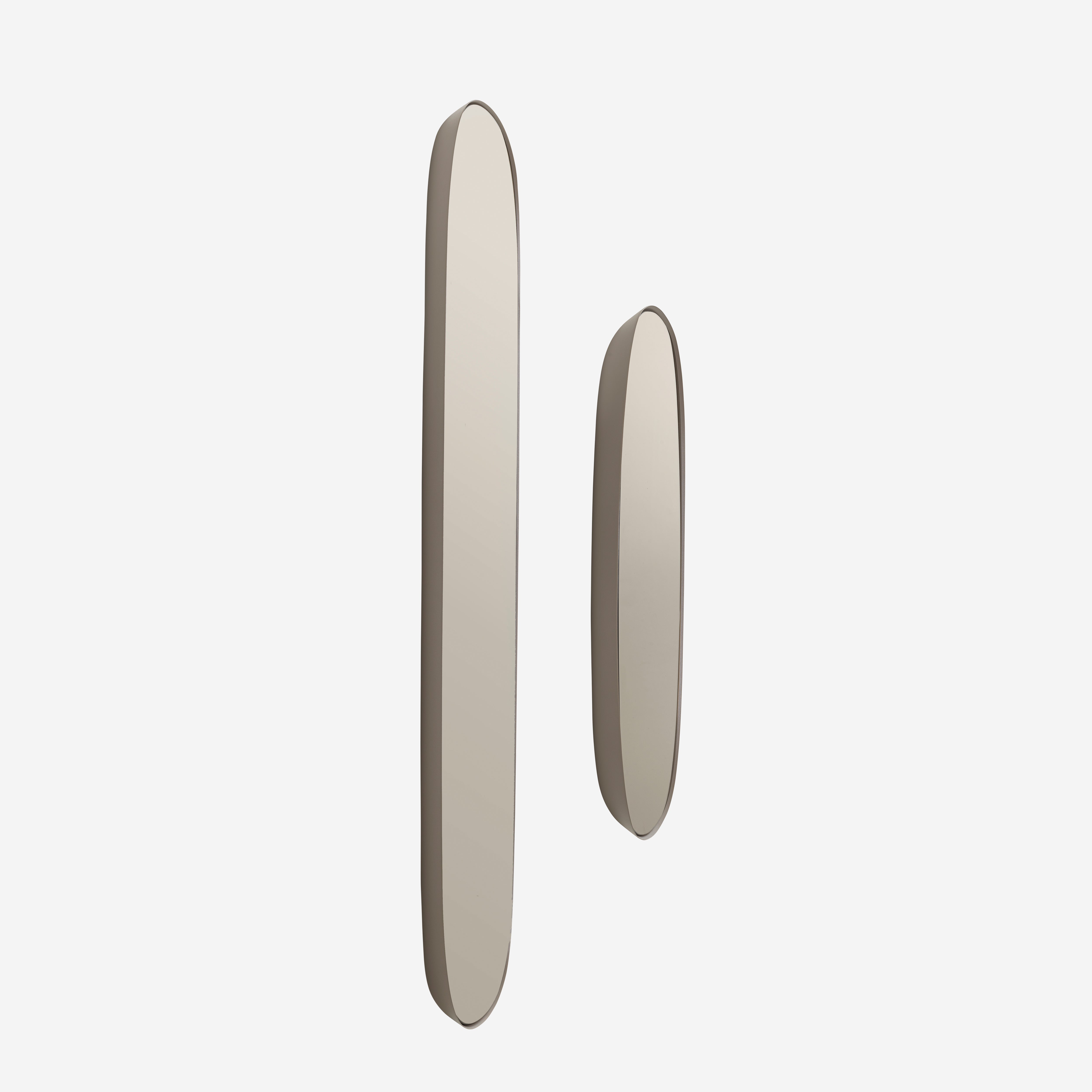 Die Framed Mirrors aus pulverbeschichtetem Stahlrahmen mit farbigem Spiegelglas sind eine sanfte, künstlerische Neuinterpretation des klassischen Spiegels. Während sie immer noch ihre Funktion als Spiegel erfüllen, verleihen die farbigen Gläser und die verschiedenen Formen den Spiegeln einen besonderen Charme. Besonders reizvoll ist die Möglichkeit, mehrere Spiegel in Gruppen zu arrangieren, was jedem Raum einen einzigartigen Charakter verleiht. Das Design ist in zwei Größen und vier Farben erhältlich.