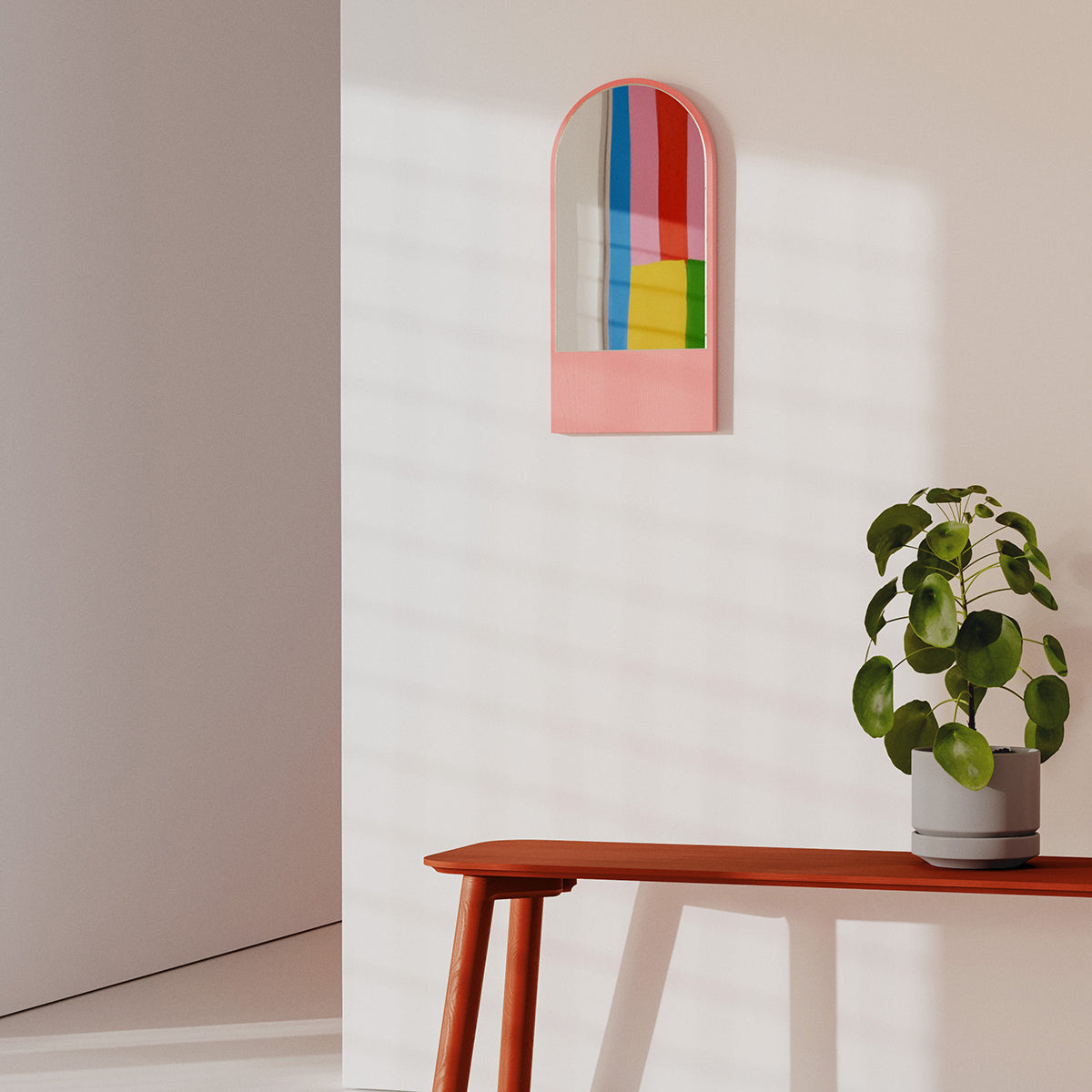 Es sind die kleinen Momente, die den großen Unterschied machen. Expressive Farben, eine blumige Holzmaserung und fein geschliffenes Spiegelglas. Der FRIEDRICH Mini hat eigentlich alles, was die große Version auch hat. Nur eben Mini und mit besonders viel Charme. Auch der ikonische Rundbogen inspiriert aus der Architektur der frühen 2020er-Jahre fehlt nicht und gibt der Mini-Ausführung den unverwechselbaren Charakter. Ob stehend auf einem Sideboard oder aufgehängt an der Wand, der FRIEDRICH Mini macht den Unterschied in deinem Zuhause.