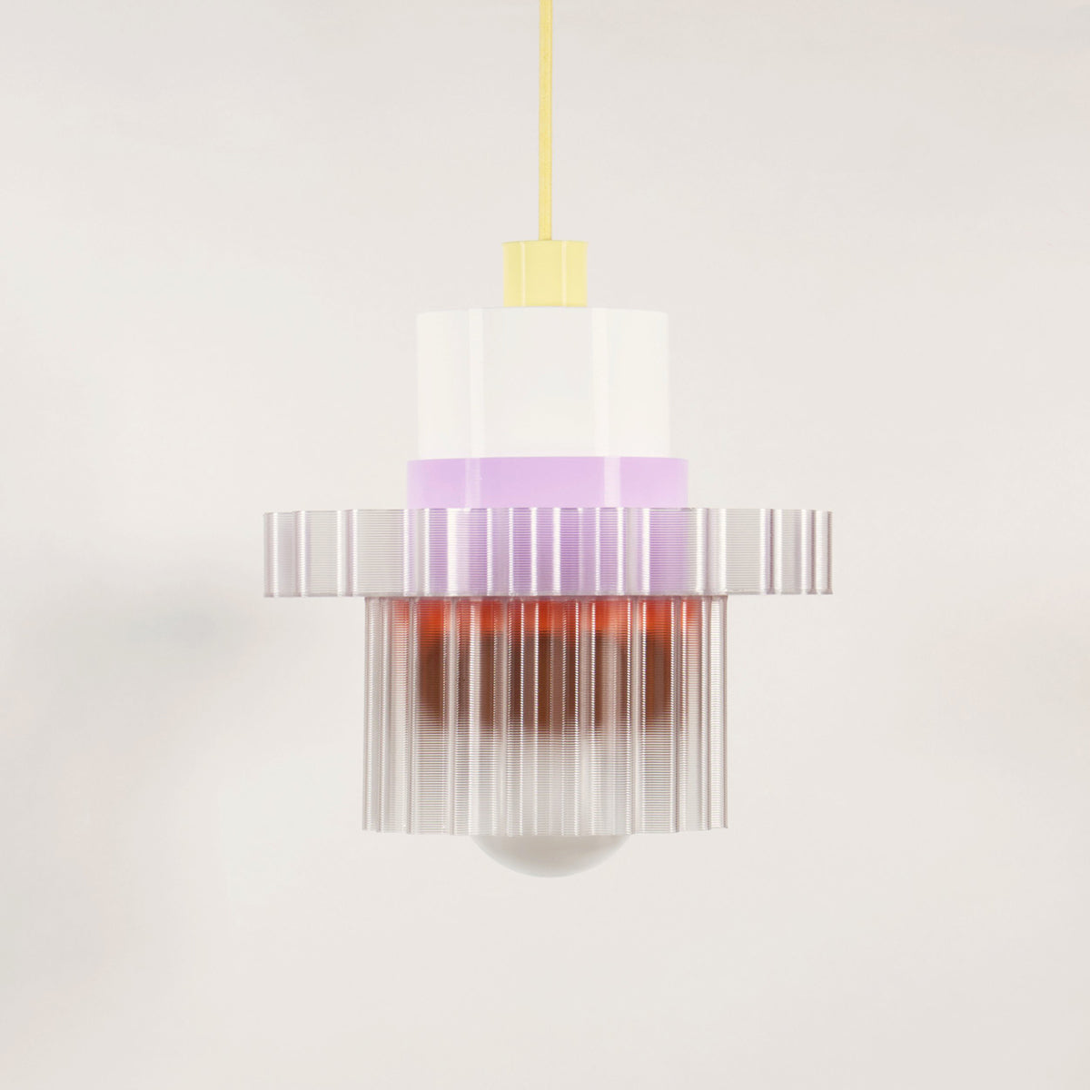 Die Leuchten-Kollektion Gigi der französischen Designer warren + laetitia besteht aus einer Reihe farbenfroher modularer Pendelleuchten. Die Gigi Lamp XL wird aus sechs austauschbaren Teilen beliebig in die endgültige Form zusammengesetzt.