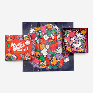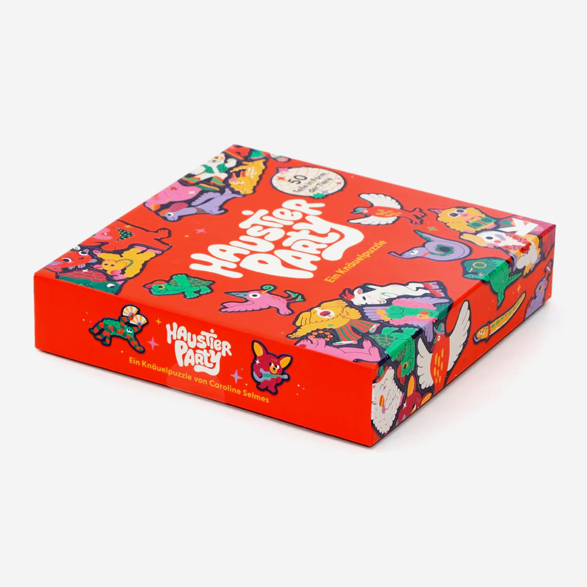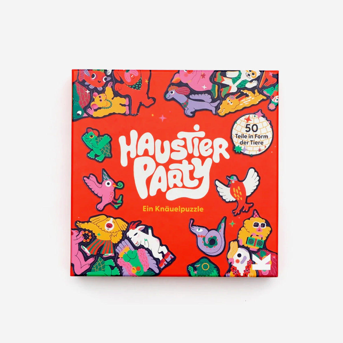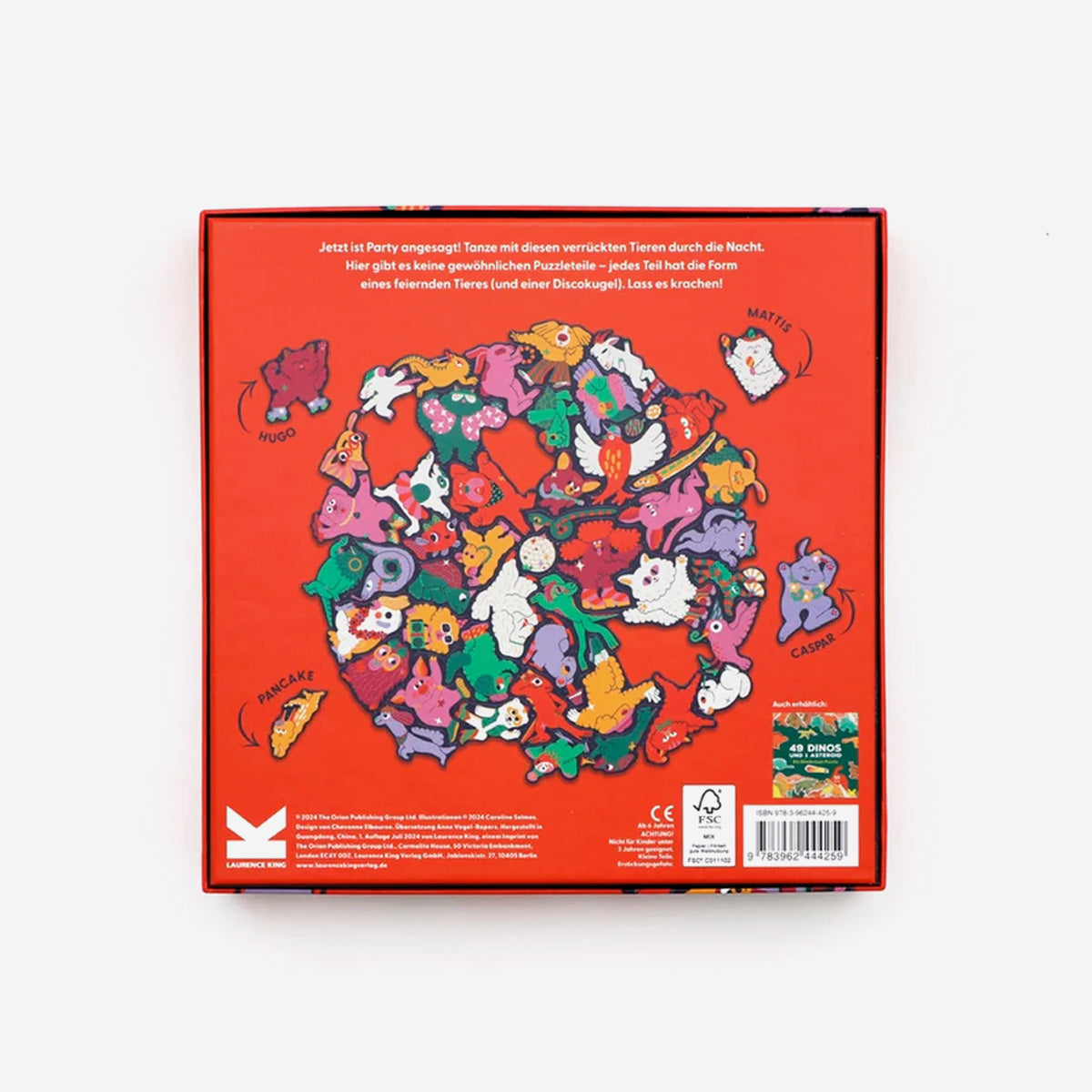 Hier geht die Post ab! 50 Haustiere feiern eine Party und jedes Puzzleteil hat die Form des jeweiligen Tieres. Ein Rahmen hält die große Sause zusammen und erleichtert das Puzzeln. Könnt ihr die glitzernde Discokugel zwischen den Haustieren entdecken? Partyhut nicht vergessen!