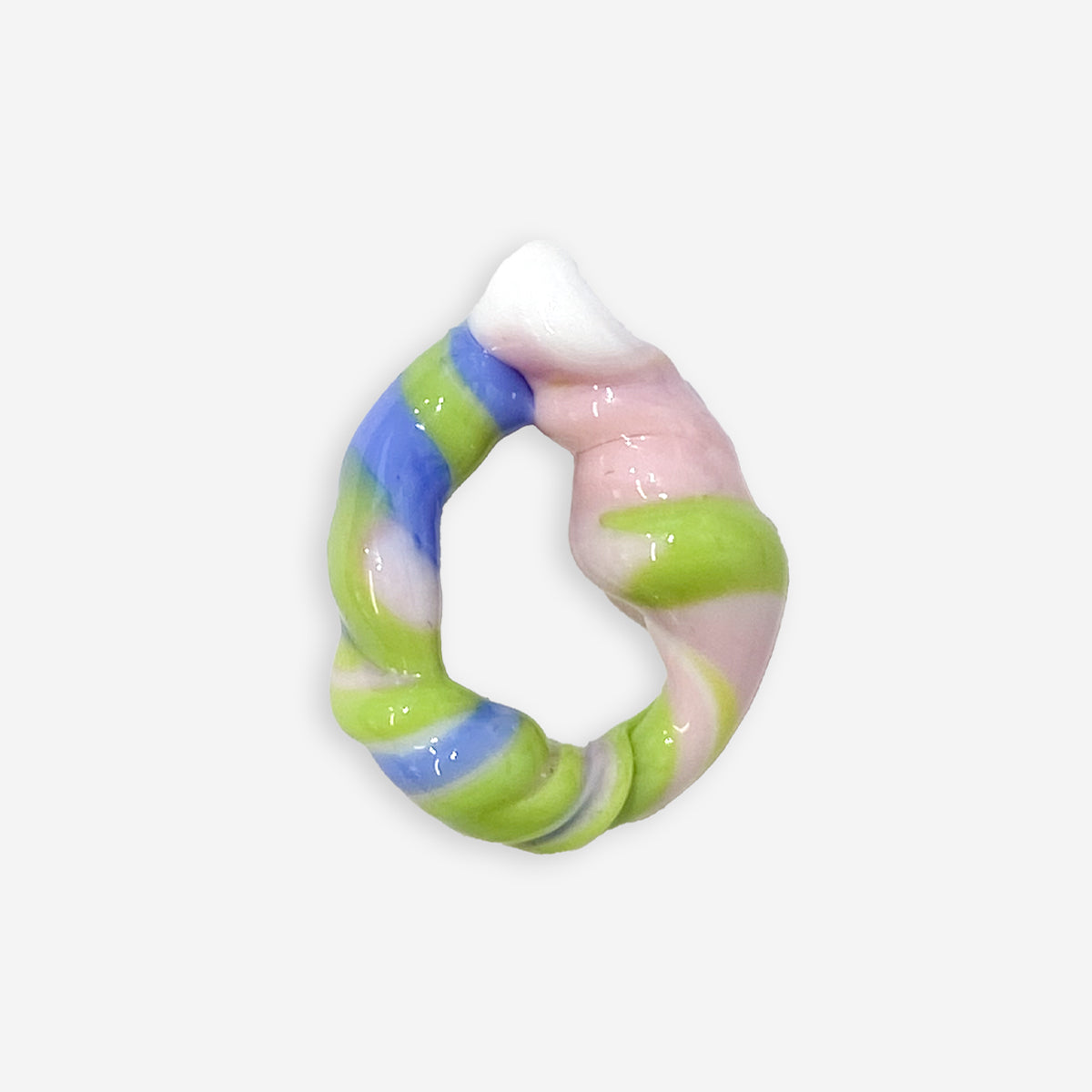 Die Kandy Kouture Mini Pendants von Kitsch Kiosk sind pure Einzigartigkeit – kein Teil gleicht dem anderen. Im Hamburger Studio über offener Flamme aus Murano-Glas geformt, entstehen Stücke mit eigenem Rhythmus: wilde Farbverläufe, unvorhersehbare Formen, jede Linie ein Zufall, der bleibt.
