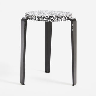 Die schwarzen Stippsen im Material waren Im ersten Leben Pflanzschalen, wie man sie in Gärtnereien benutzt. Diese Version des LOU Stools beweist einmal mehr TIPTOEs Streben nach der Entwicklung hochwertiger, nachhaltiger Möbel aus innovativen Materialien und mit eigenständigem Design.