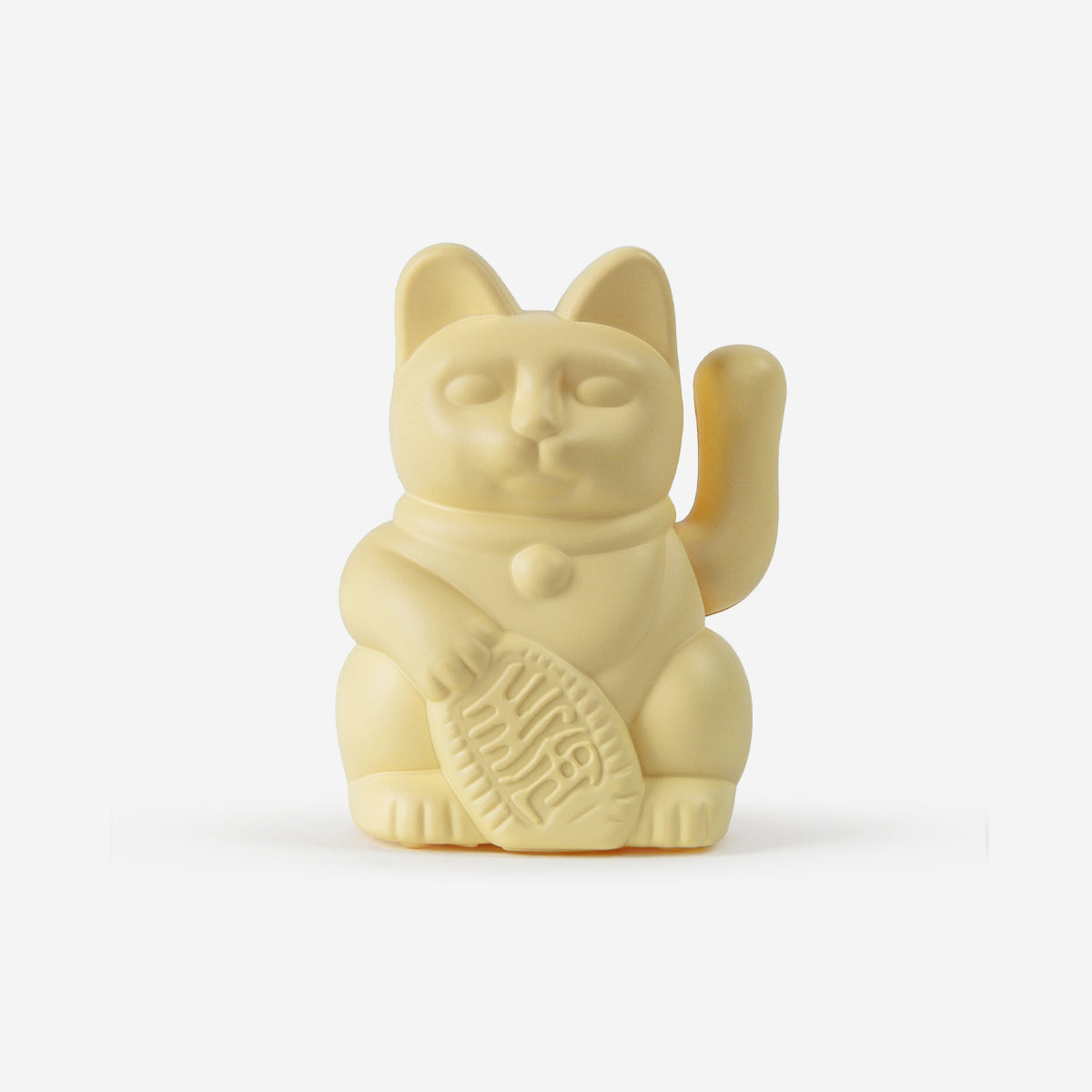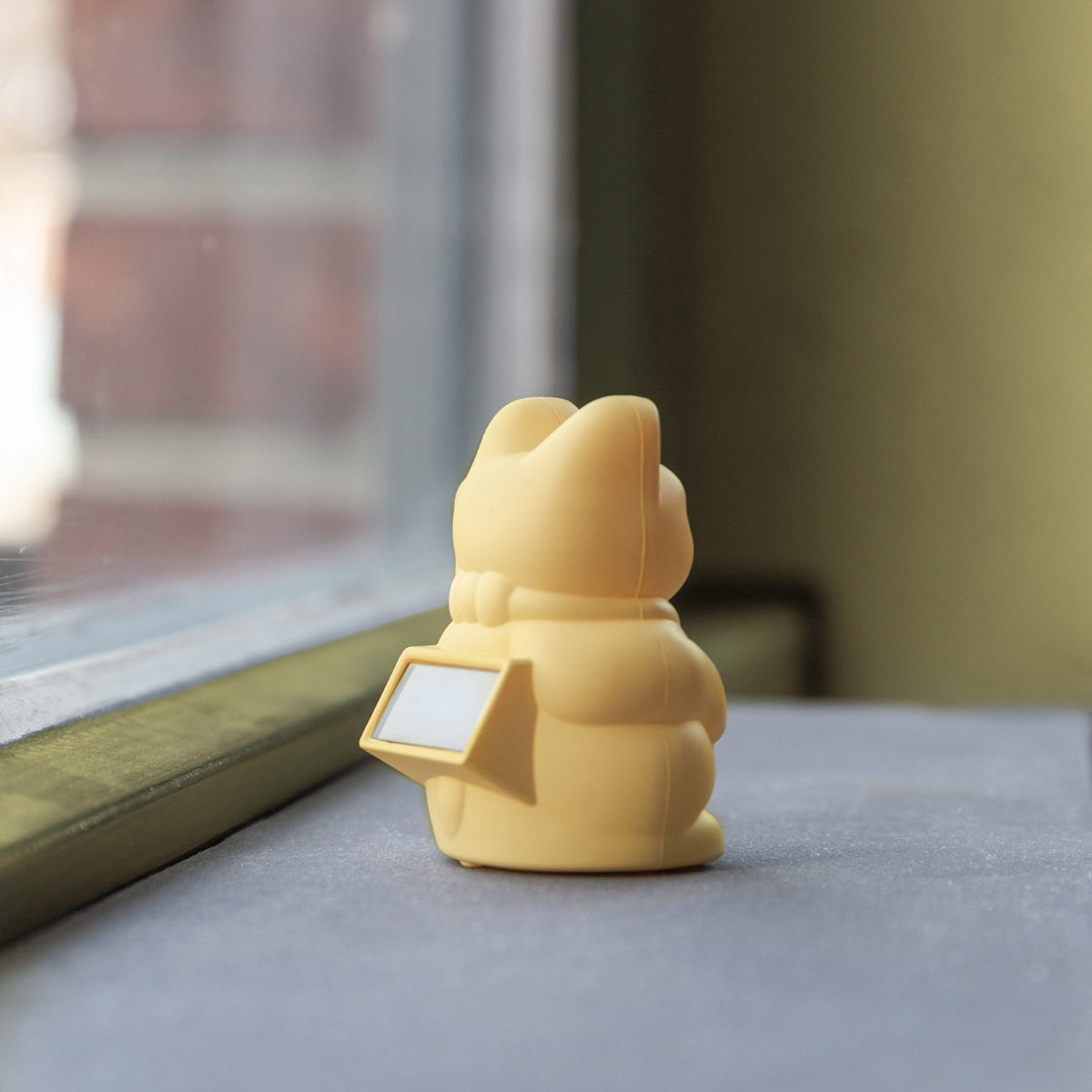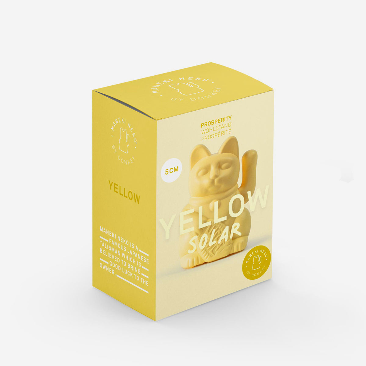 Diese Lucky Cat Solar in Gelb braucht nur eins: ein bisschen Licht. Dann fängt sie an zu winken, ganz unermüdlich, ganz selbstverständlich. Gelb steht in der japanischen Symbolik für Wohlstand und Wachstum, aber hier fühlt es sich eher an wie ein gut gelaunter Wink, der sagt: läuft doch.