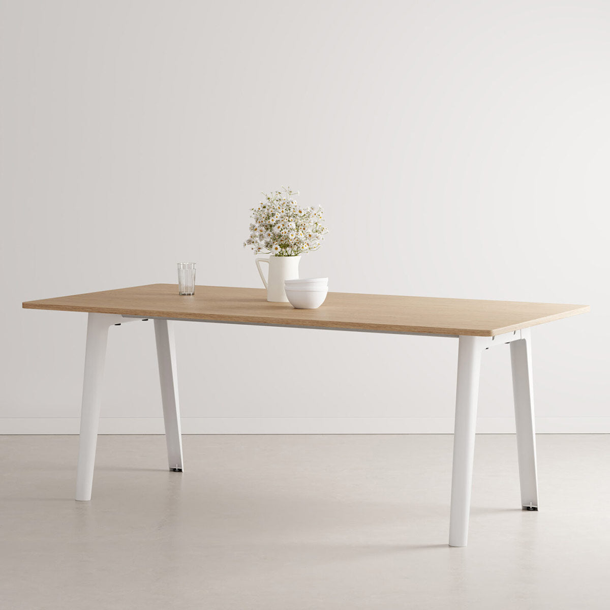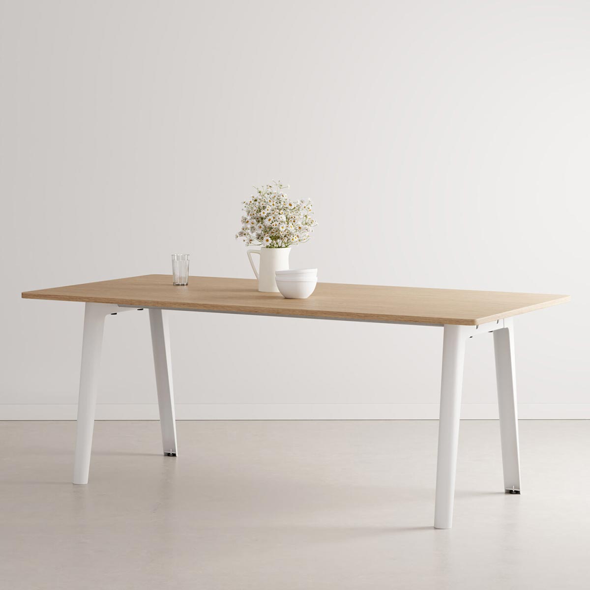 Minimalistisch, schön, hochfunktional und nachhaltig: der NEW MODERN Dining Table von TIPTOE mit Tischplatte aus öko-zertifiziertem Holz ist der perfekte Esstisch für die ganze Familie. Je nach gewählter Größe können bis zu 12 Menschen an der langen Tafel sitzen! Auch als Besprechungstisch macht der NEW MODERN Dining Table eine gute Figur.