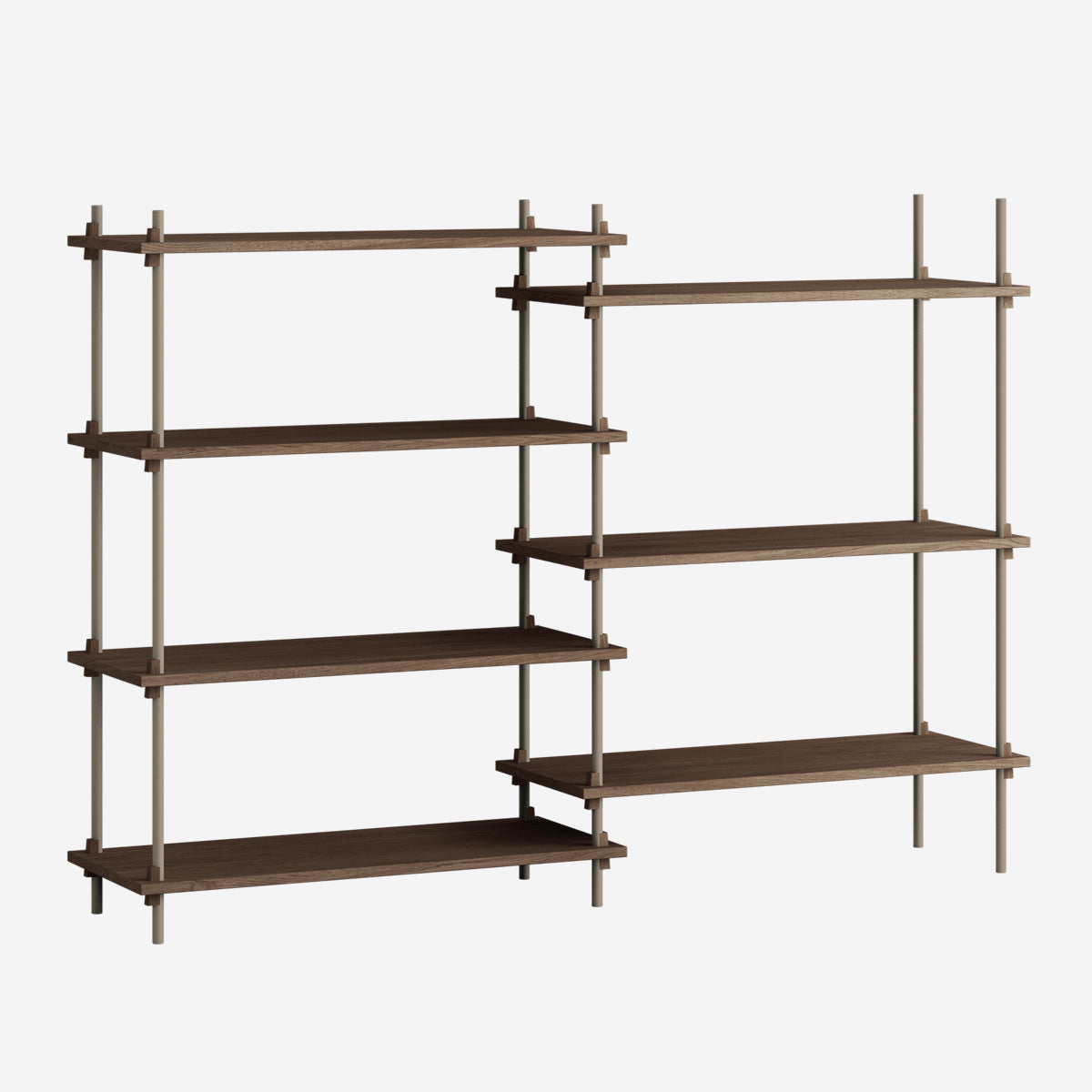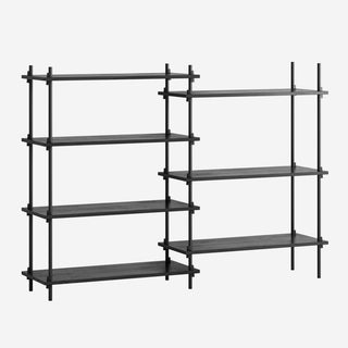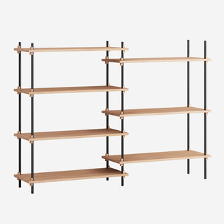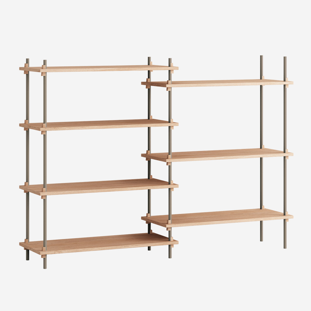 Mit dem MOEBE Shelving System hast du die volle Freiheit, dein eigenes, individuelles Regal zu bauen. Baue es so hoch wie du willst, so breit wie du es brauchst, baue es um Ecken herum oder überbrücke sogar verschiedene Ebenen. Das Shelving System kann als Raumteiler frei stehen oder klassisch an einer Wand platziert werden.