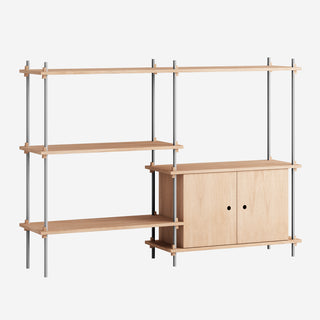 Mit dem MOEBE Shelving System hast du die volle Freiheit, dein eigenes, individuelles Regal zu bauen. Baue es so hoch wie du willst, so breit wie du es brauchst, baue es um Ecken herum oder überbrücke sogar verschiedene Ebenen. Das Shelving System kann als Raumteiler frei stehen oder klassisch an einer Wand platziert werden.