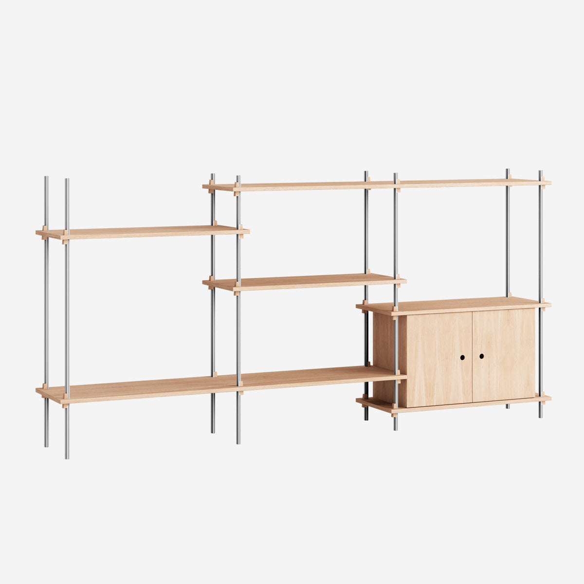 Mit dem MOEBE Shelving System hast du die volle Freiheit, dein eigenes, individuelles Regal zu bauen. Baue es so hoch wie du willst, so breit wie du es brauchst, baue es um Ecken herum oder überbrücke sogar verschiedene Ebenen. Das Shelving System kann als Raumteiler frei stehen oder klassisch an einer Wand platziert werden.