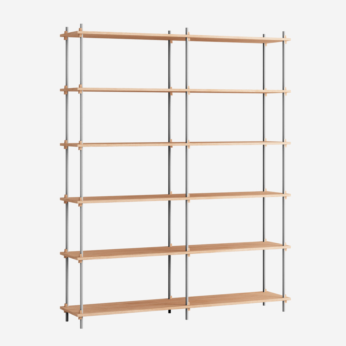 Mit dem MOEBE Shelving System hast du die volle Freiheit, dein eigenes, individuelles Regal zu bauen. Baue es so hoch wie du willst, so breit wie du es brauchst, baue es um Ecken herum oder überbrücke sogar verschiedene Ebenen. Das Shelving System kann als Raumteiler frei stehen oder klassisch an einer Wand platziert werden.