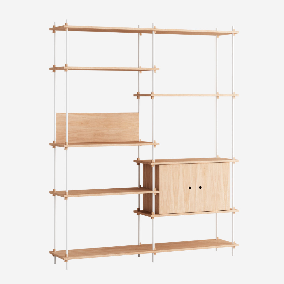 Mit dem MOEBE Shelving System hast du die volle Freiheit, dein eigenes, individuelles Regal zu bauen. Baue es so hoch wie du willst, so breit wie du es brauchst, baue es um Ecken herum oder überbrücke sogar verschiedene Ebenen. Das Shelving System kann als Raumteiler frei stehen oder klassisch an einer Wand platziert werden.