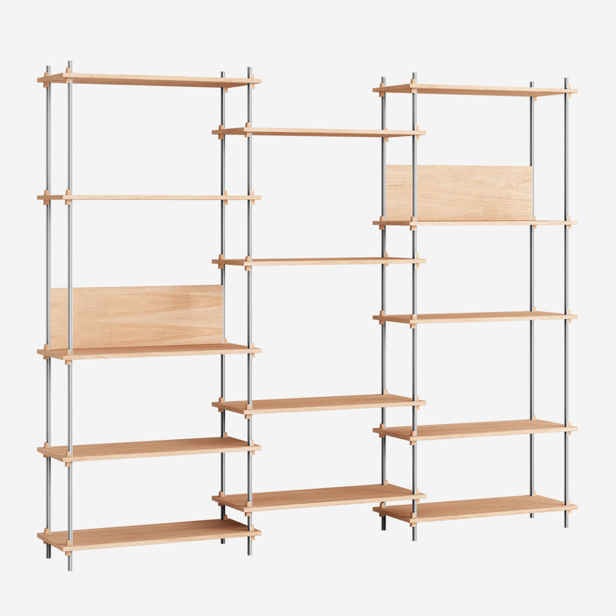 Mit dem MOEBE Shelving System hast du die volle Freiheit, dein eigenes, individuelles Regal zu bauen. Baue es so hoch wie du willst, so breit wie du es brauchst, baue es um Ecken herum oder überbrücke sogar verschiedene Ebenen. Das Shelving System kann als Raumteiler frei stehen oder klassisch an einer Wand platziert werden.