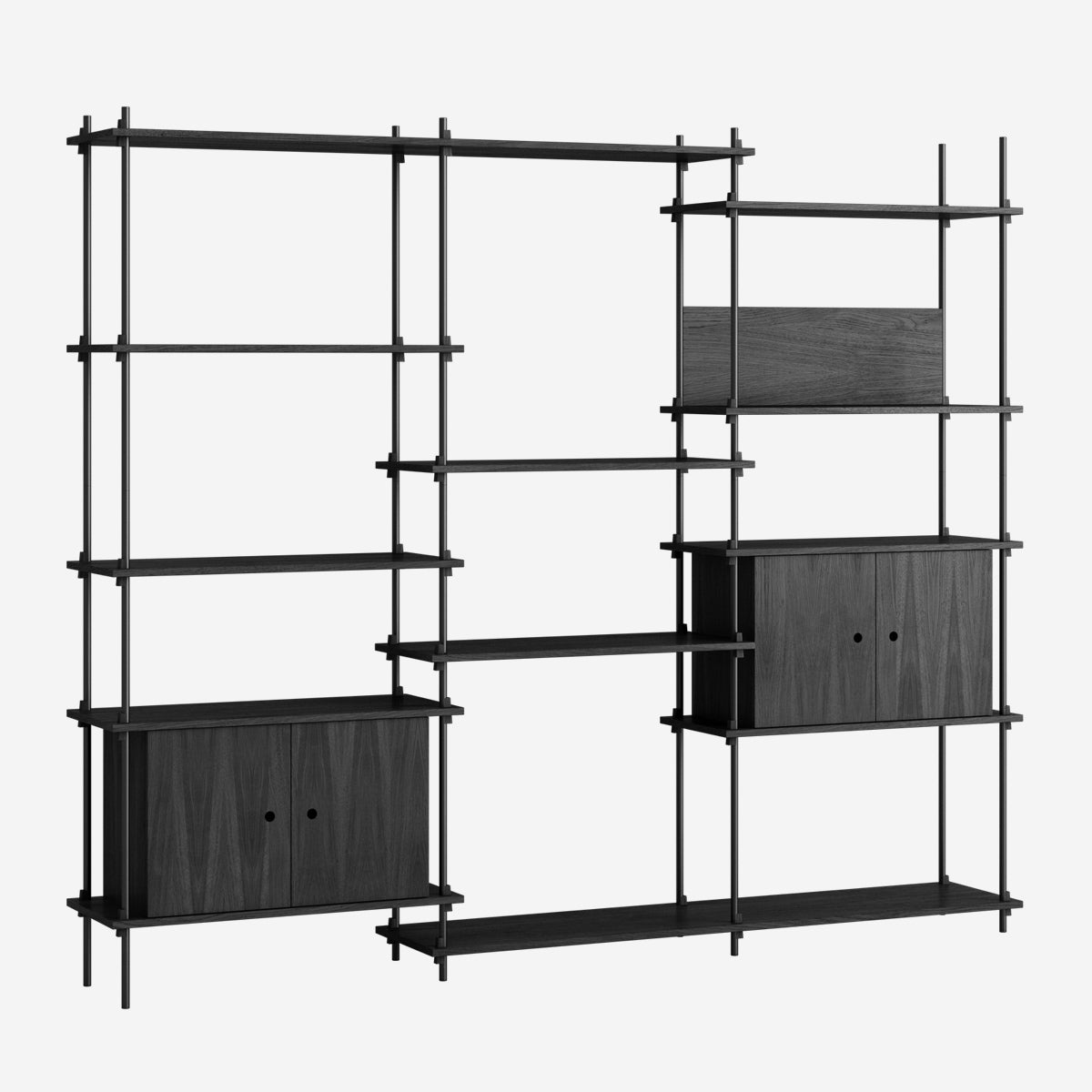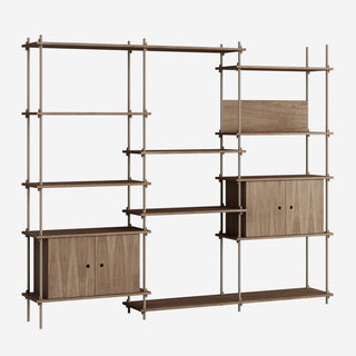 Mit dem MOEBE Shelving System hast du die volle Freiheit, dein eigenes, individuelles Regal zu bauen. Baue es so hoch wie du willst, so breit wie du es brauchst, baue es um Ecken herum oder überbrücke sogar verschiedene Ebenen. Das Shelving System kann als Raumteiler frei stehen oder klassisch an einer Wand platziert werden.