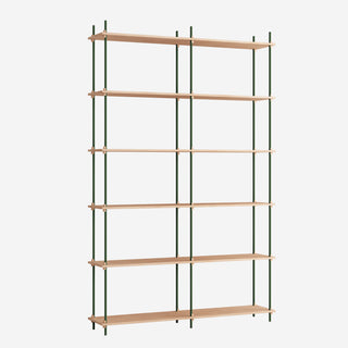 Die Böden und Schrankmodule sind in Eiche Natur und geräuchert, in Schwarz und in Weiß verfügbar. Die Stangen gibt es neben klassischem Schwarz und Weiß auch in Deep Blue, Pine Green, Warm Grey. Durch die Kombination verschiedener Längen, die fast unsichtbar ineinander geschraubt werden, ist fast jede individuelle Höhe konfigurierbar.
