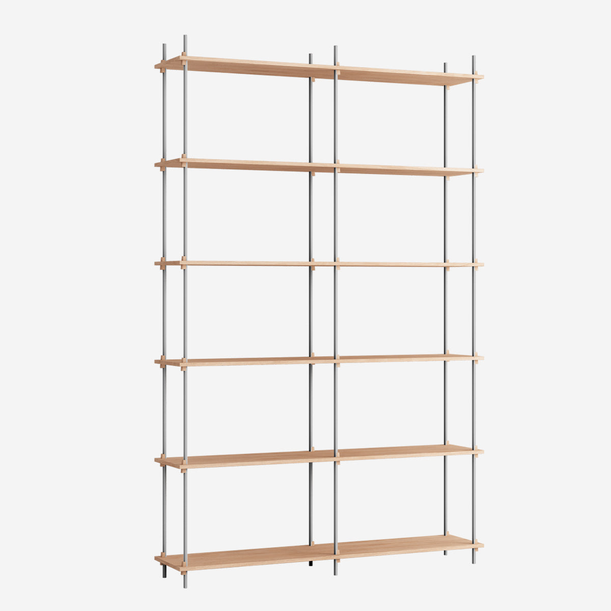 Mit dem MOEBE Shelving System hast du die volle Freiheit, dein eigenes, individuelles Regal zu bauen. Baue es so hoch wie du willst, so breit wie du es brauchst, baue es um Ecken herum oder überbrücke sogar verschiedene Ebenen. Das Shelving System kann als Raumteiler frei stehen oder klassisch an einer Wand platziert werden.