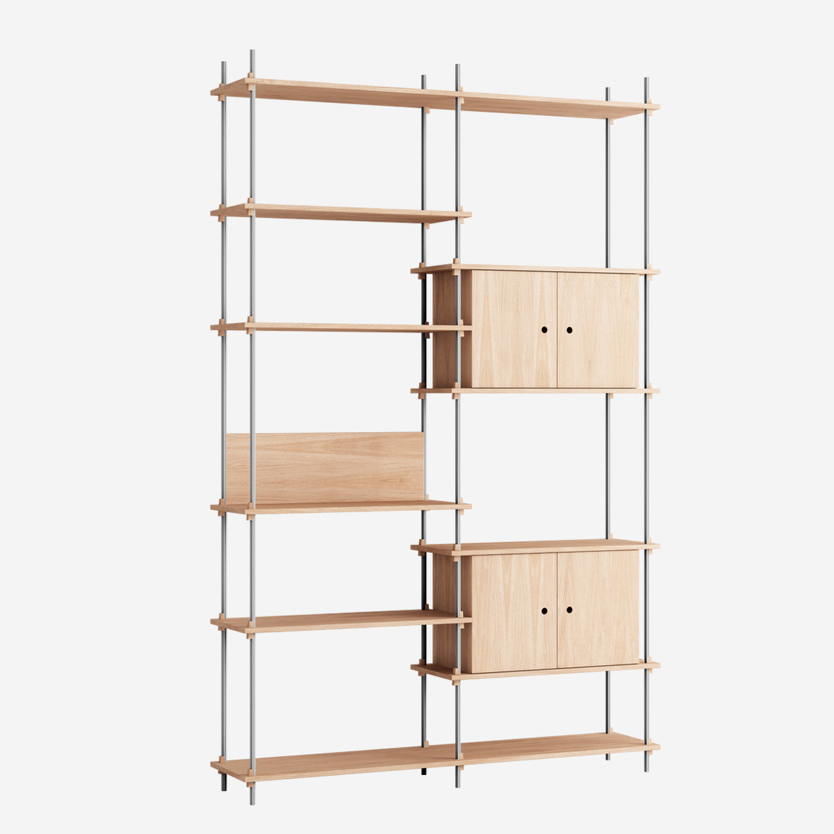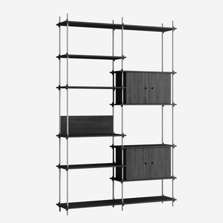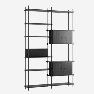 Mit dem MOEBE Shelving System hast du die volle Freiheit, dein eigenes, individuelles Regal zu bauen. Baue es so hoch wie du willst, so breit wie du es brauchst, baue es um Ecken herum oder überbrücke sogar verschiedene Ebenen. Das Shelving System kann als Raumteiler frei stehen oder klassisch an einer Wand platziert werden.