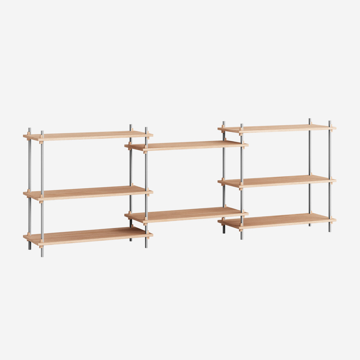 Mit dem MOEBE Shelving System hast du die volle Freiheit, dein eigenes, individuelles Regal zu bauen. Baue es so hoch wie du willst, so breit wie du es brauchst, baue es um Ecken herum oder überbrücke sogar verschiedene Ebenen. Das Shelving System kann als Raumteiler frei stehen oder klassisch an einer Wand platziert werden.